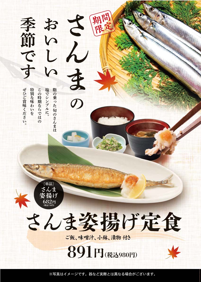 お食事処「ごちそう屋」よりさんま姿揚げ定食のご案内
