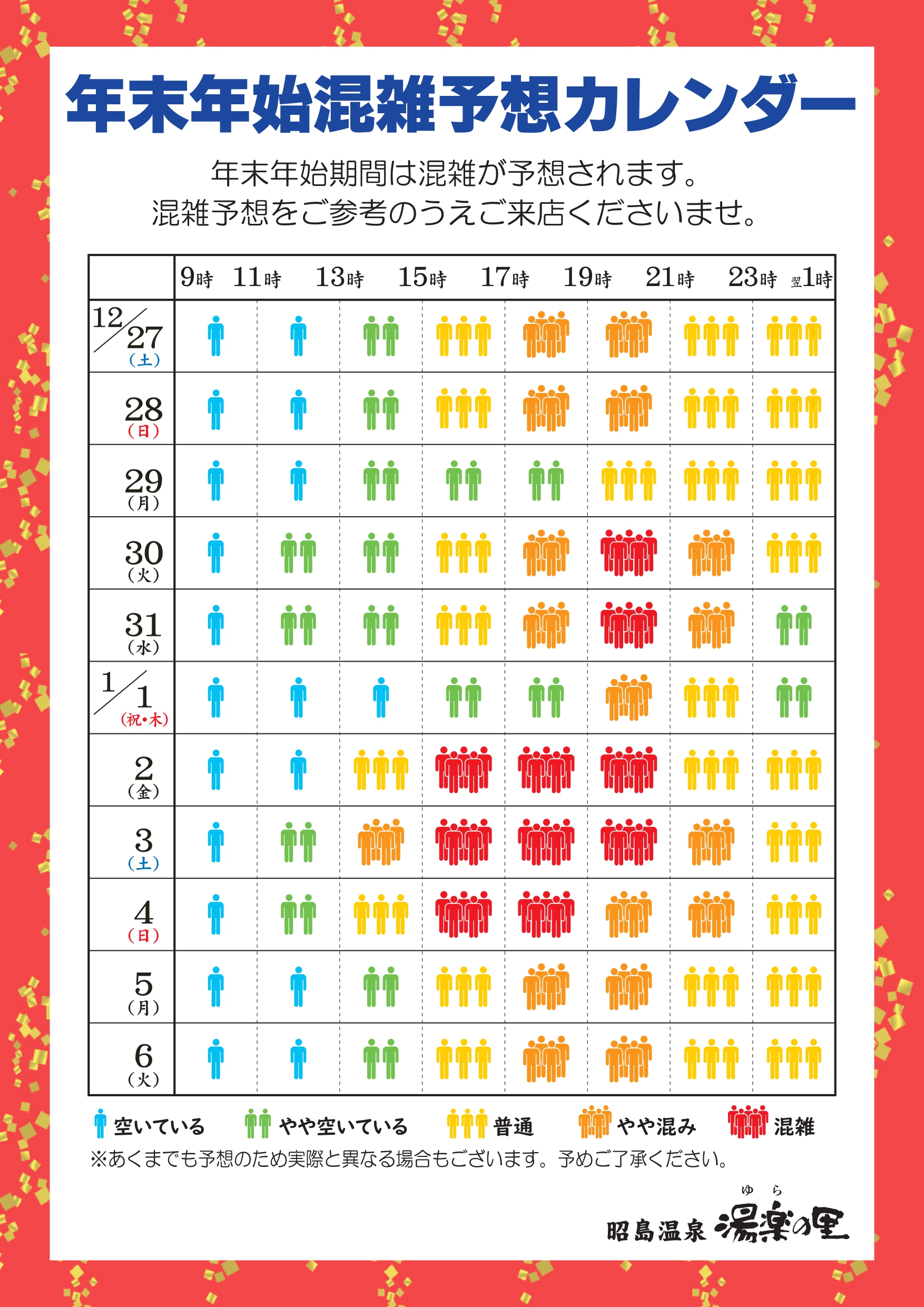 年末年始混雑予想のお知らせ12/27(土)~1/6(火)