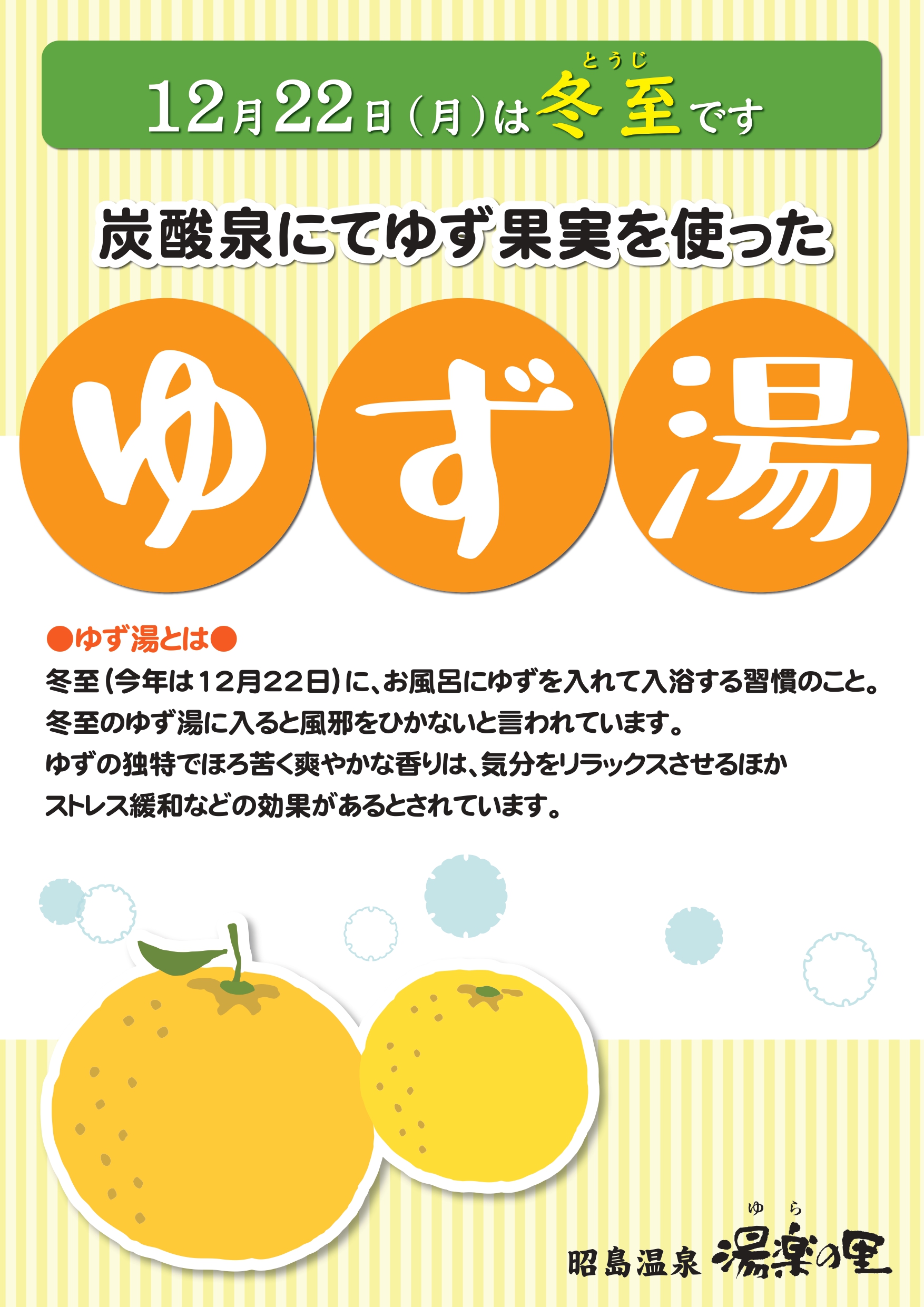 12月22日(月)ゆず湯開催のお知らせ