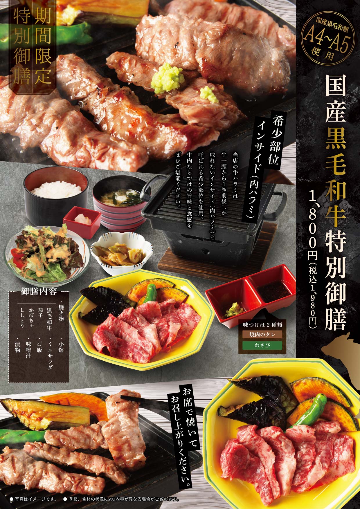 お食事処「ごちそう屋」より国産黒毛和牛特別御膳のご案内