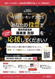 新着情報 News HOME 新着情報 ニフティ温泉 年間ランキング2025のお知らせ 2025-09-08お知らせ ニフティ温泉 年間ランキング2025のお知らせ 2025年11月30日まで ニフティ温泉年間ランキング2025 が開催されます。 お客様の応援を お待ちしております。 一覧に戻る