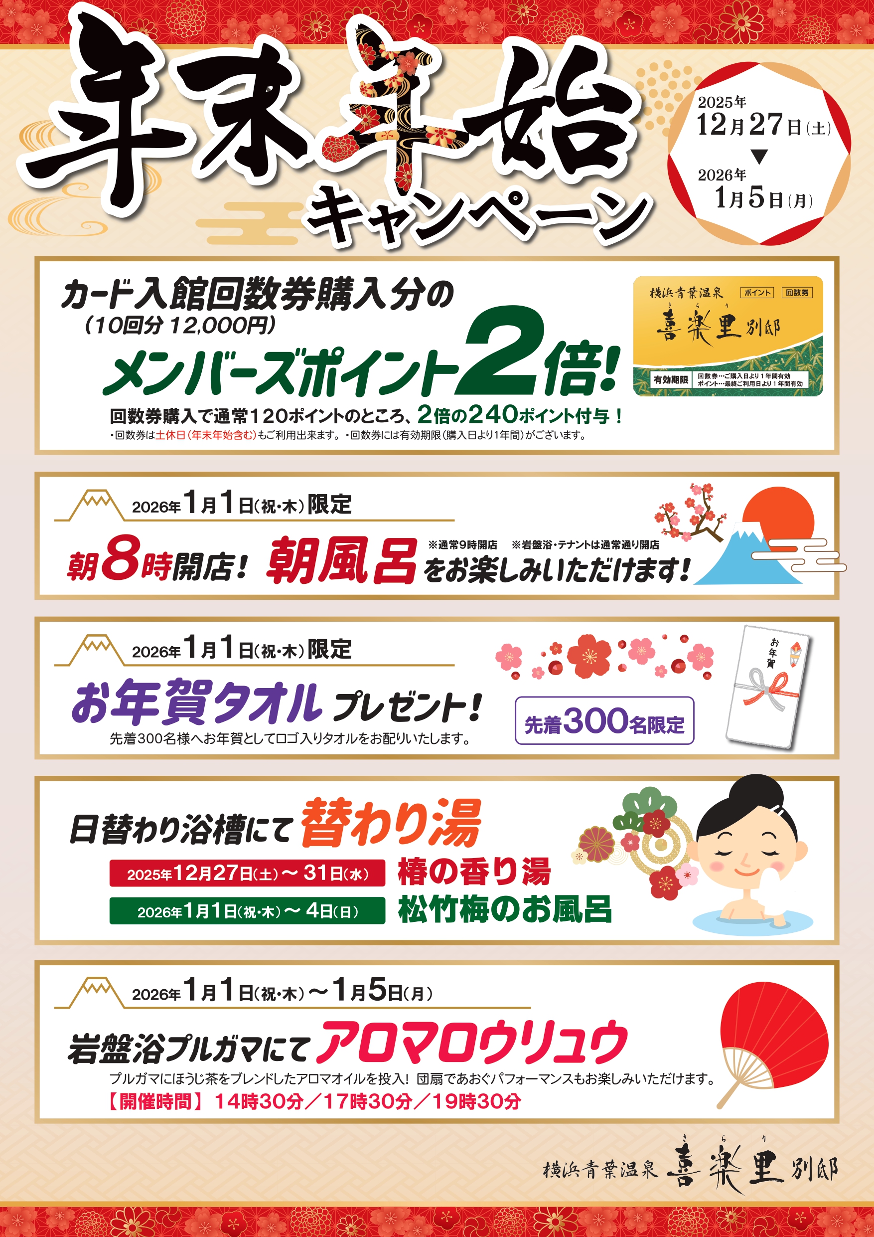 12月27日(土)~1月5日(月)の期間、年末年始キャンペーンを開催いたします!