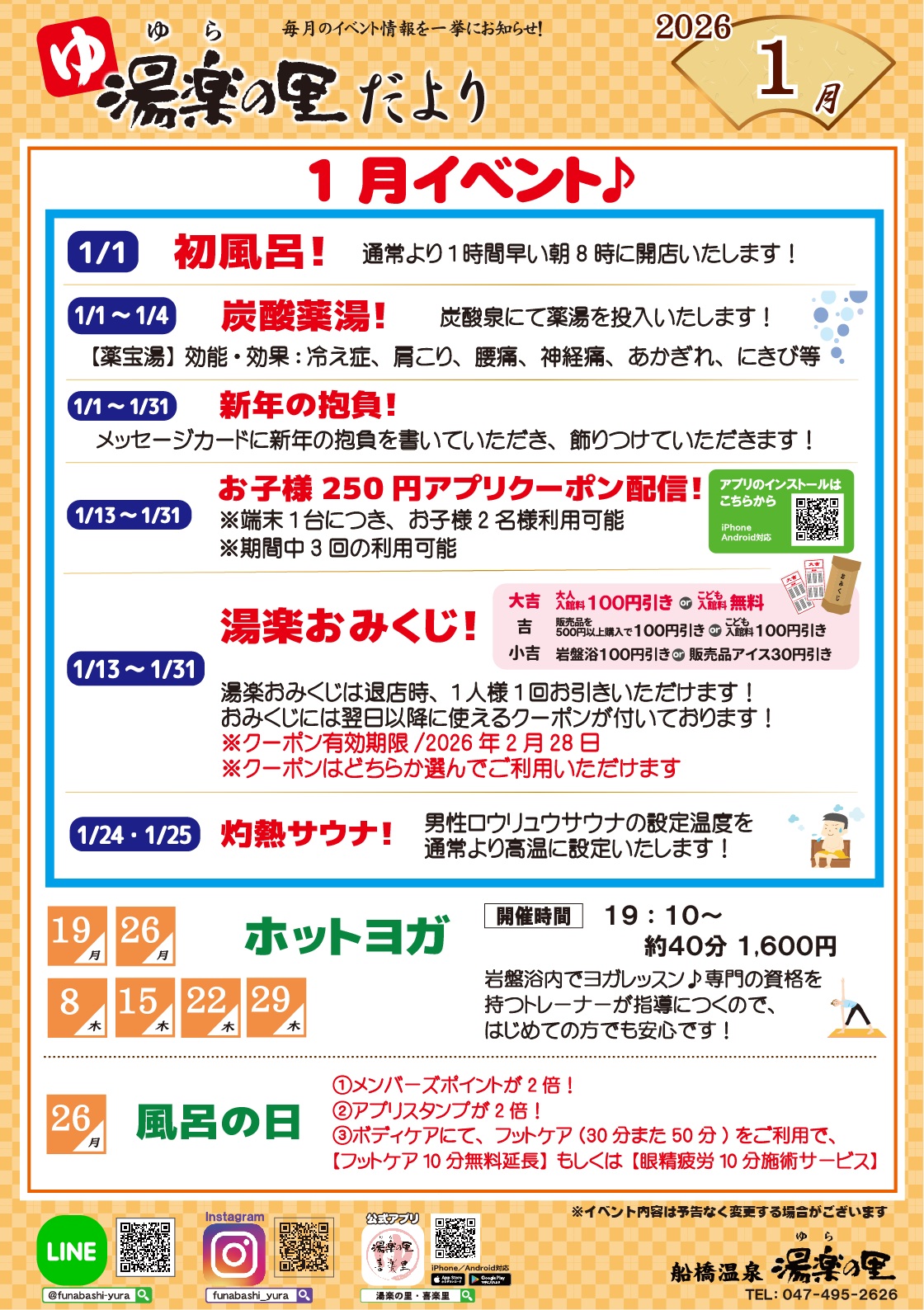 1月「湯楽の里だより」のお知らせ