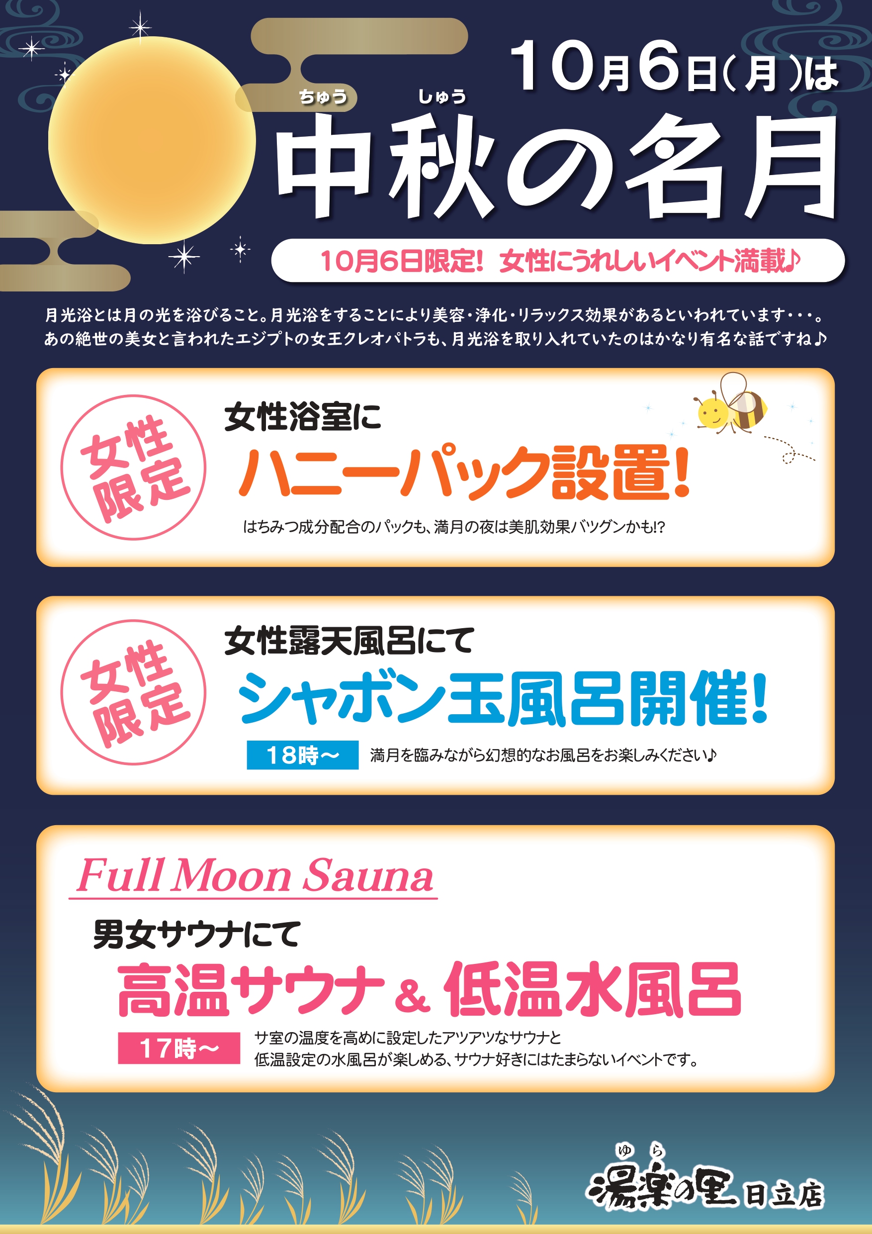 中秋の名月10/6㈪女性にうれしいイベント満載♪