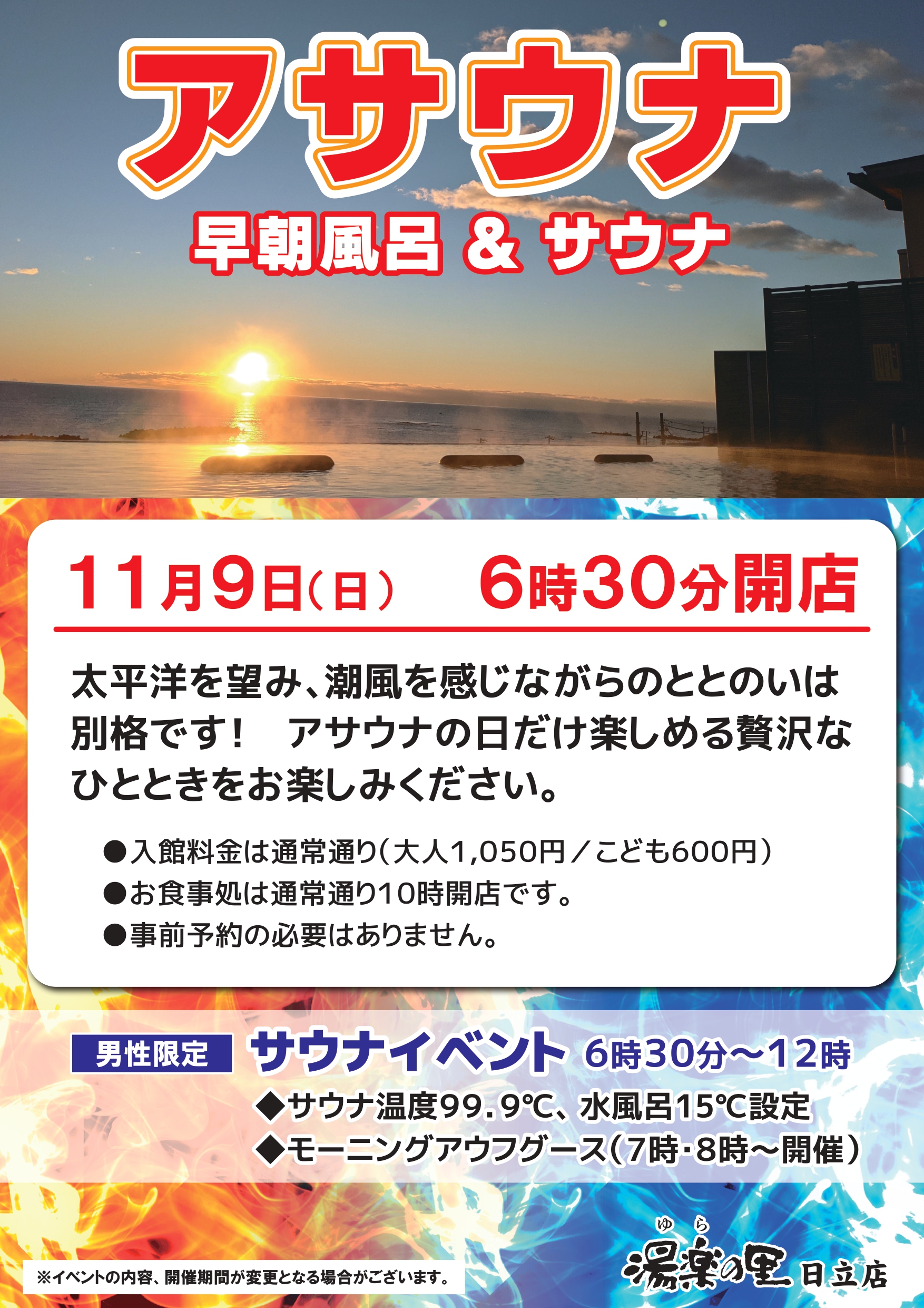 11月のアサウナは9日㈰です♪