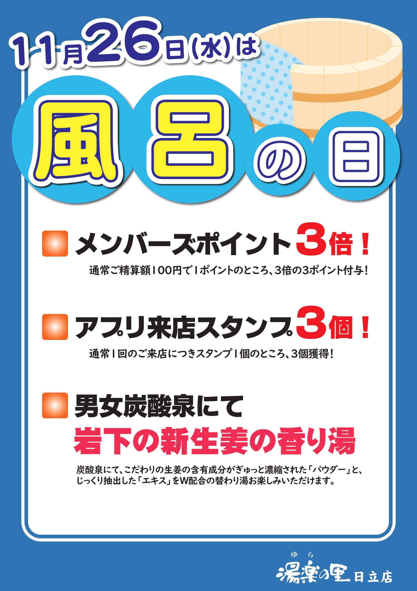 風呂の日は(26日)アプリ&ポイント3倍♨