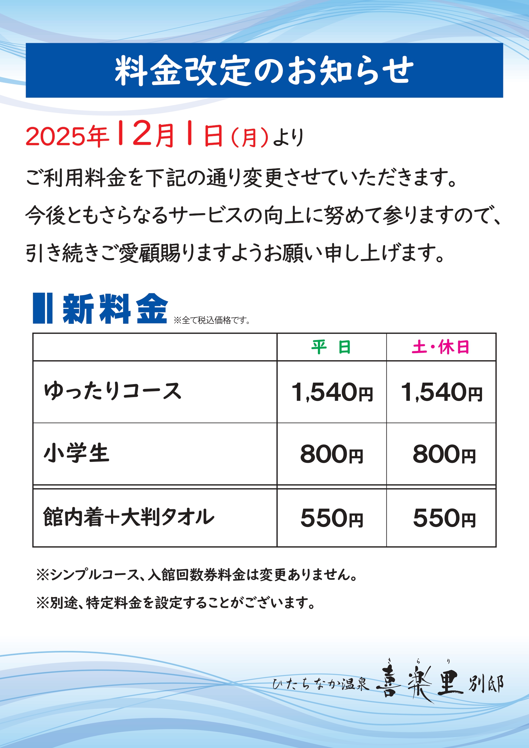 料金改定のお知らせ【2025年12月1日(月)より】