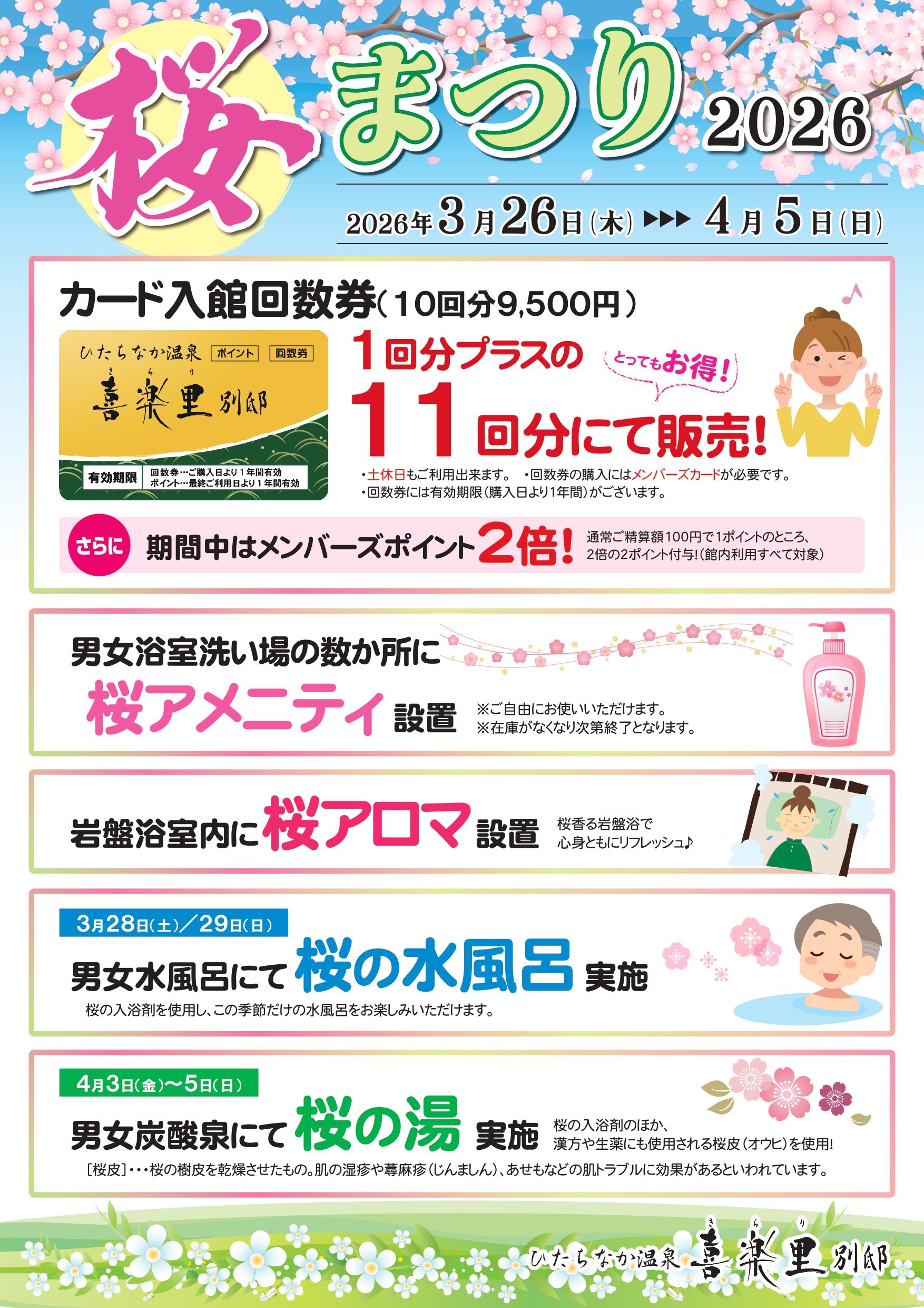 「桜まつり」開催のお知らせ 2026年3月26日(木)~4月5日(日)