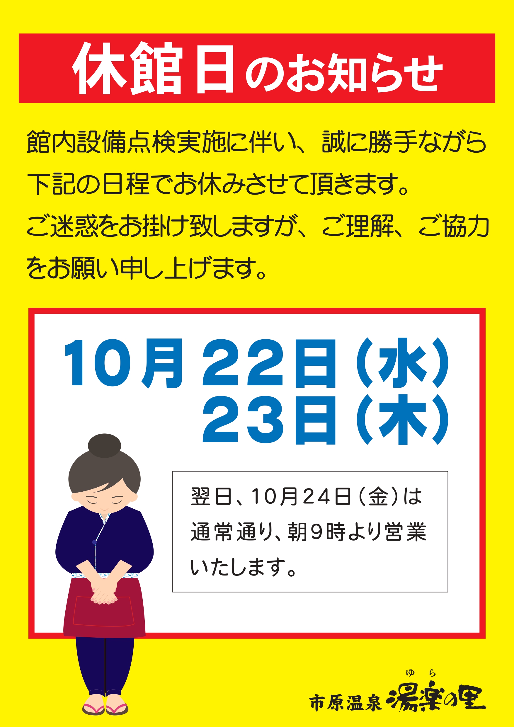 休館日のお知らせ 10月22日(水)~10月23日(木)