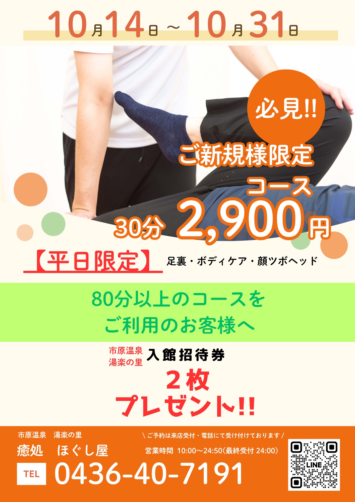 【ほぐし屋】より ご新規様限定コースのお知らせ