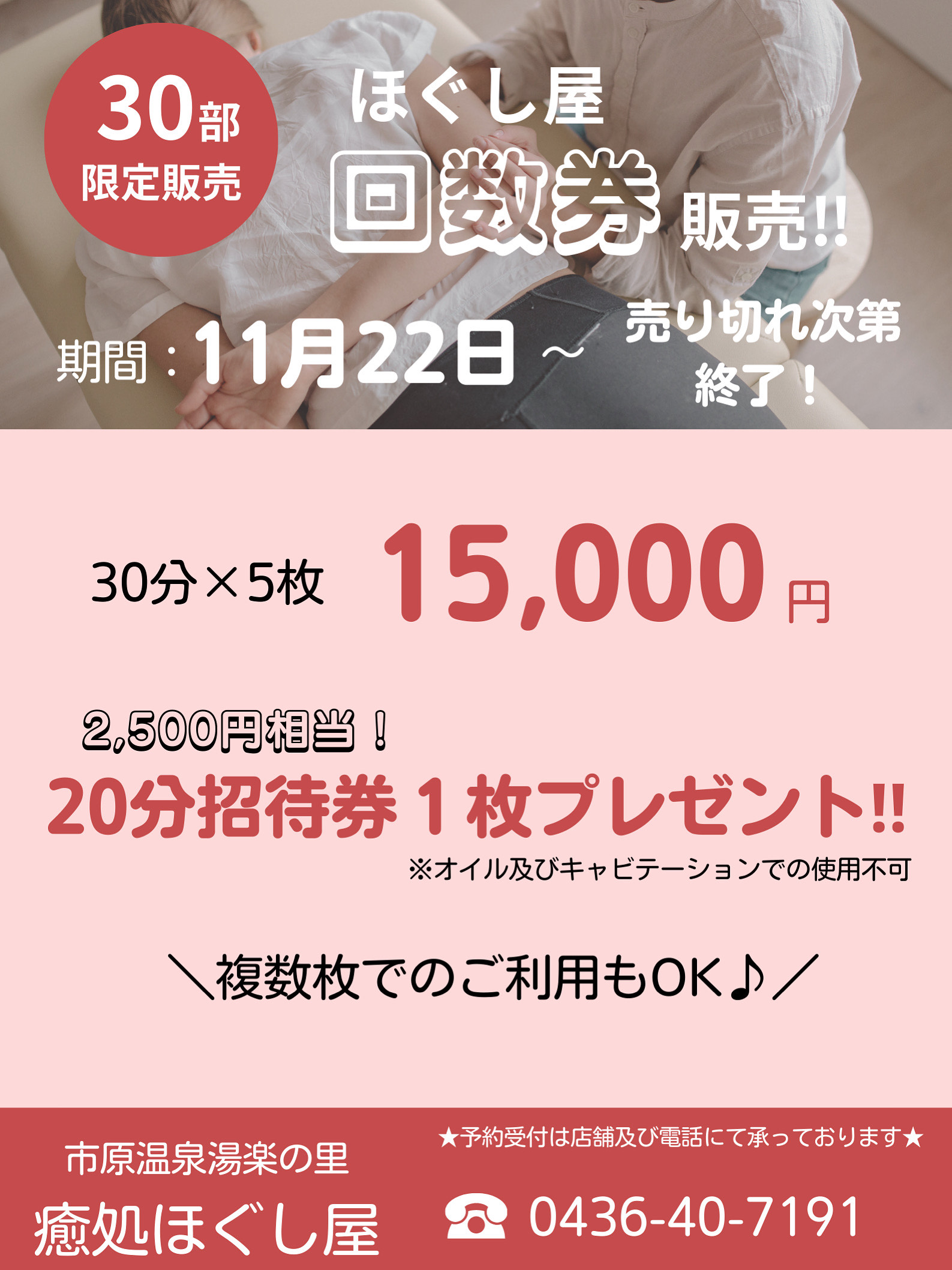 【ほぐし屋】より お得なほぐし屋回数券販売のお知らせ
