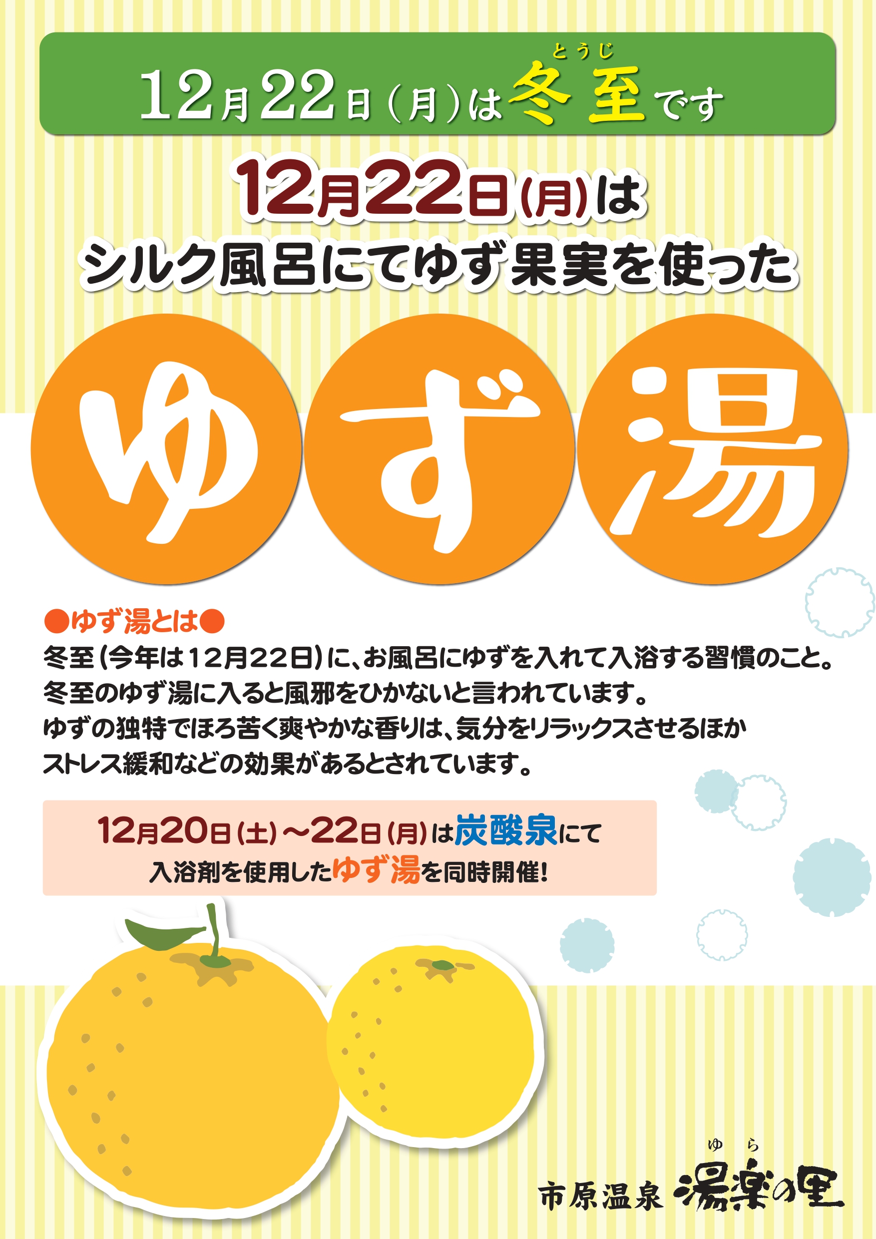 12月22日(月)は冬至 ゆず湯のお知らせ