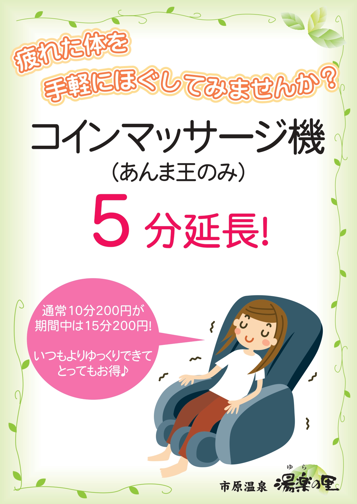 【12月31日まで】コインマッサージ機(あんま王)5分延長サービス
