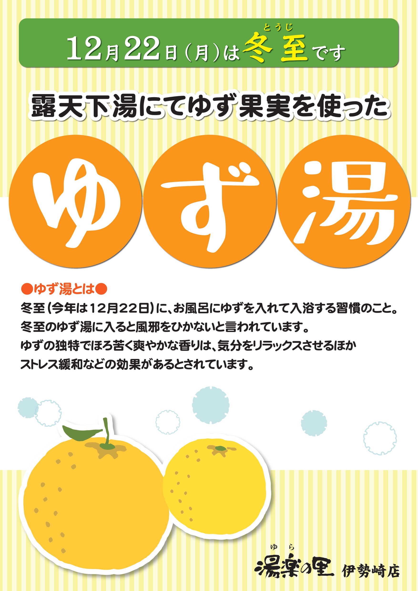 2025年12月04日 12月22日(月)ゆず湯開催のお知らせ