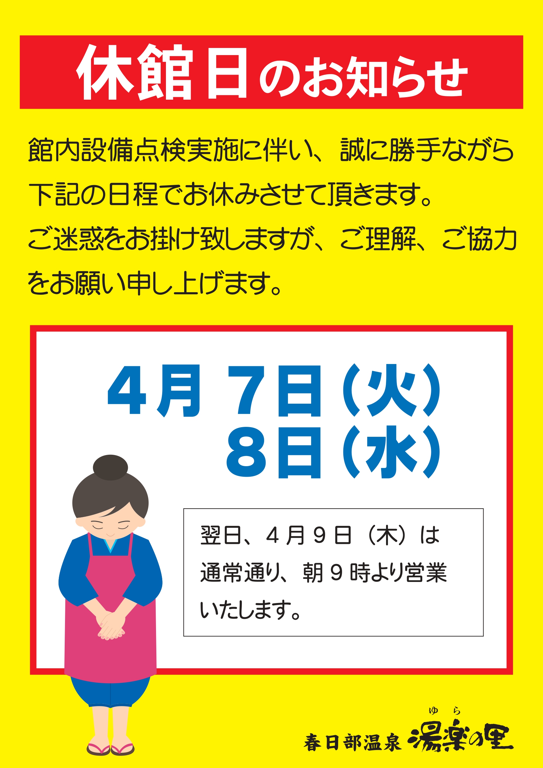 休館日のお知らせ 4月7日(火)・8日(水)