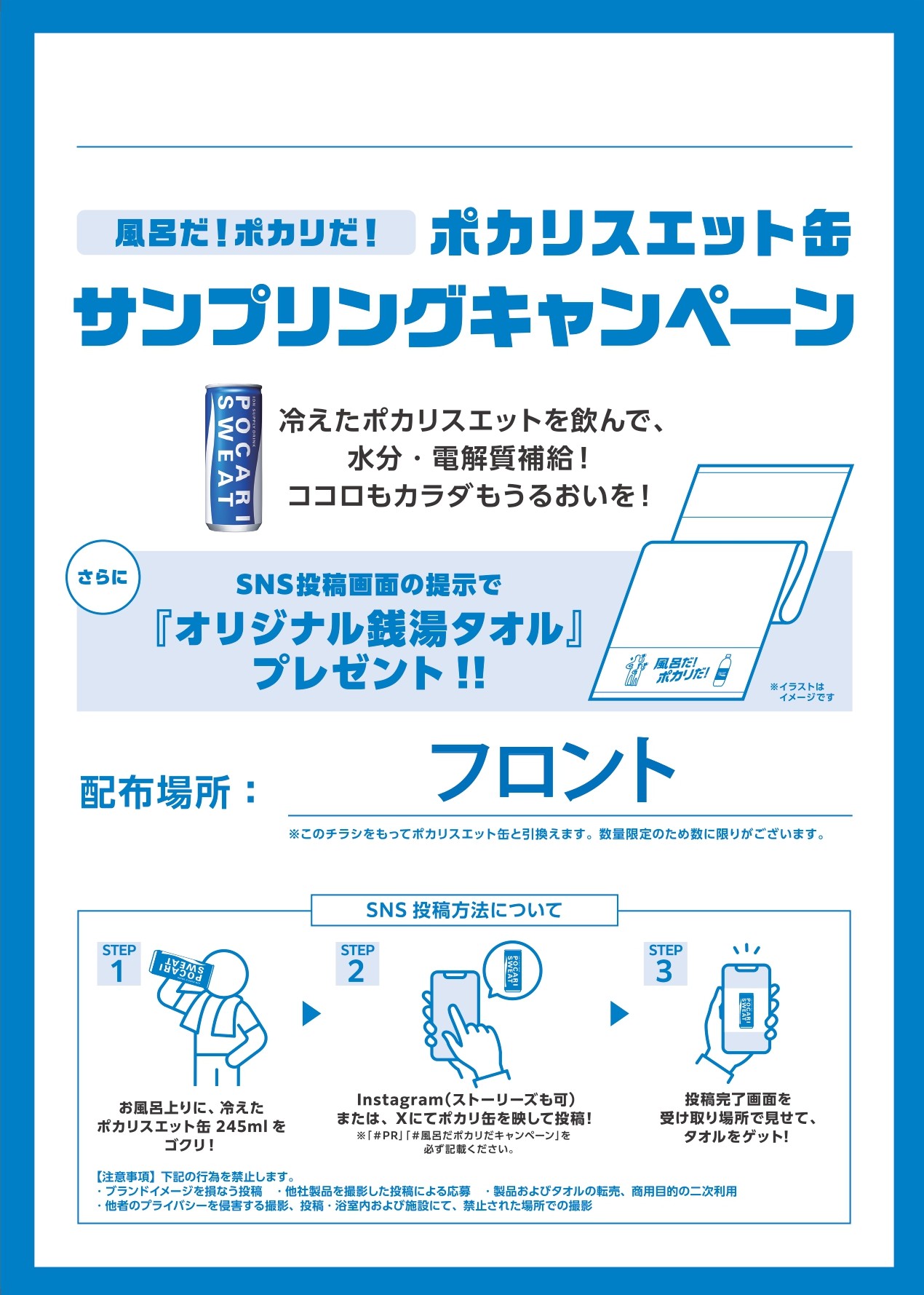 4月26日(日)15時~【風呂だポカリだキャンペーン】のご案内(数量限定配布)