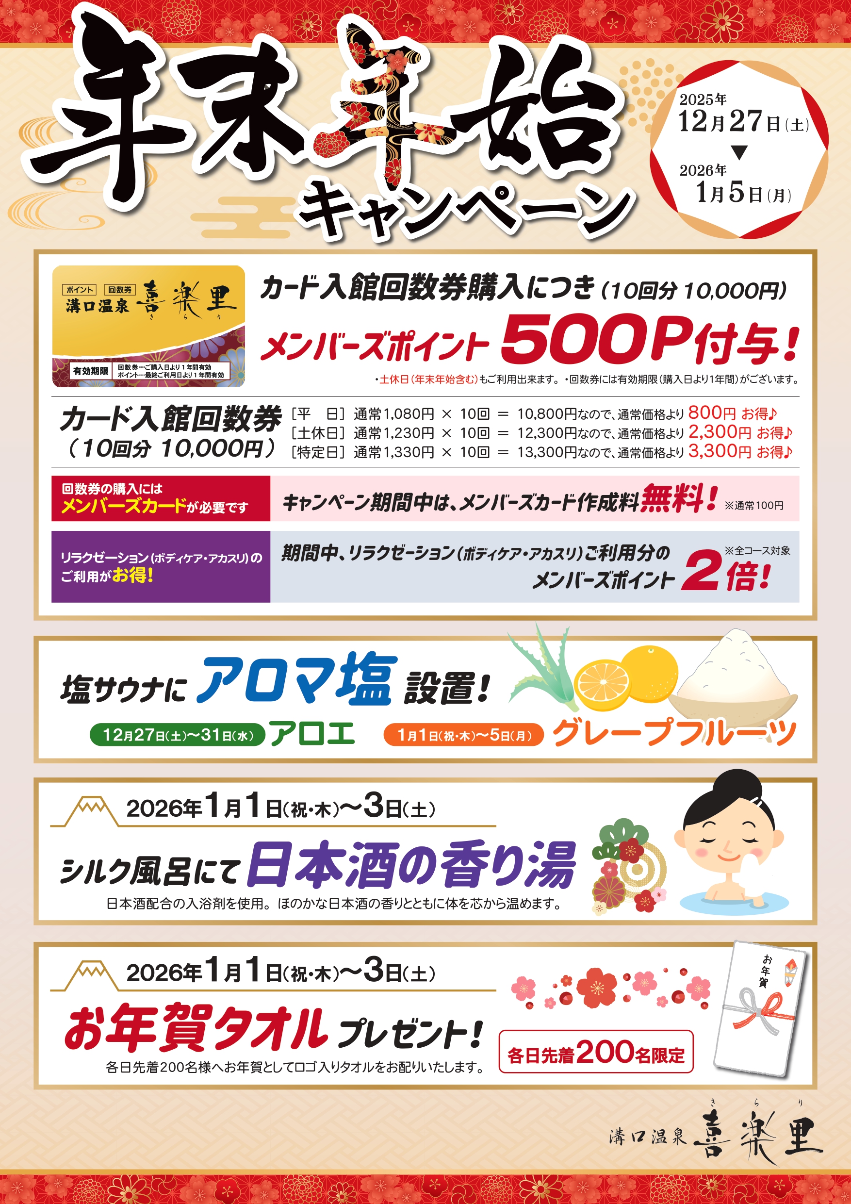 2025年12月27日(土)~2026年1月5日(月)までの期間年末年始キャンペーンを開催いたします。