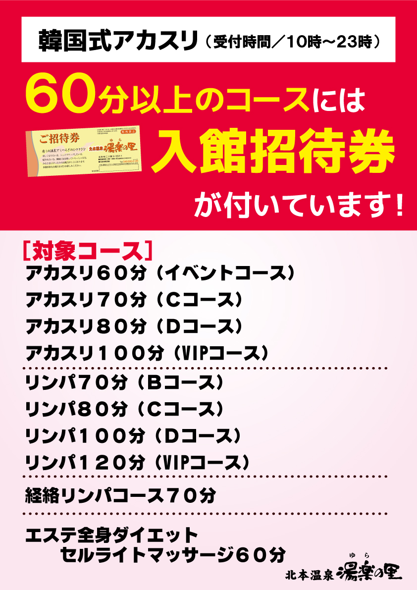 こりとり処・あかすりからのご案内