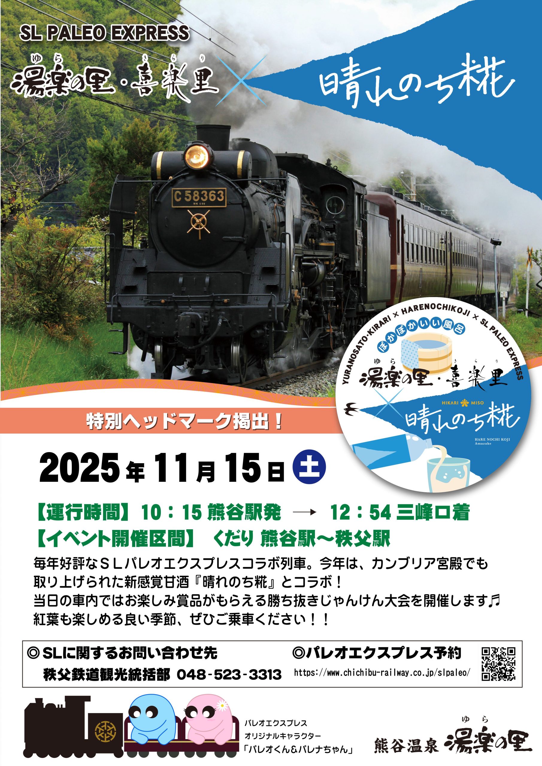 11月15日(土) 秩父鉄道SLパレオエクスプレスイベント列車運行!