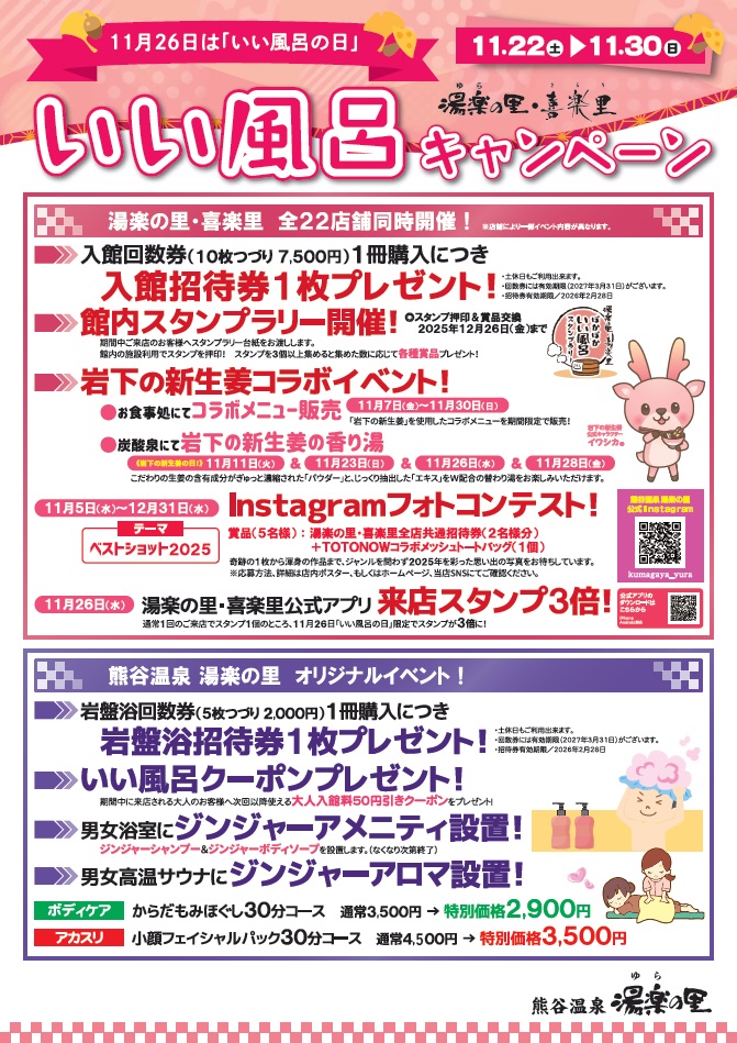 湯楽の里・喜楽里 公式アプリ会員募集中! |