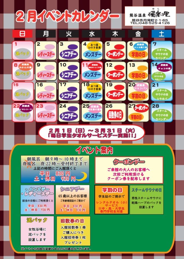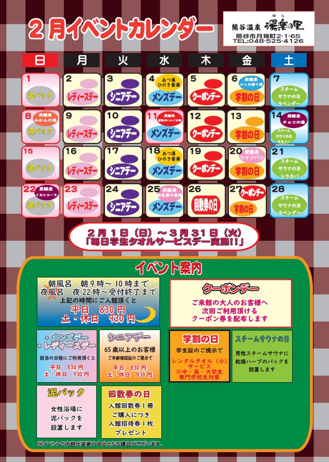 2月イベントカレンダー |
