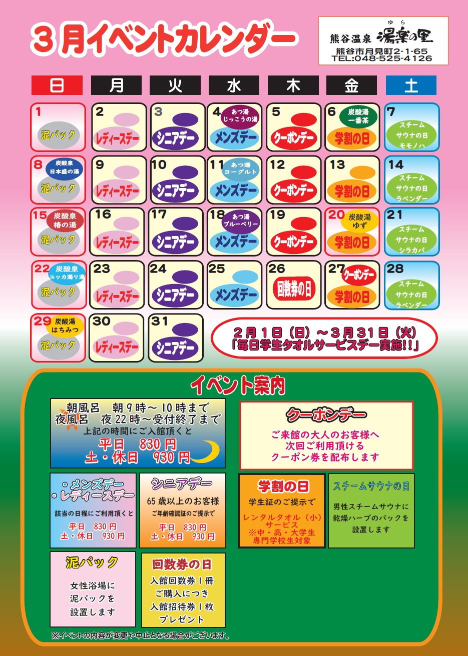 3月イベントカレンダー