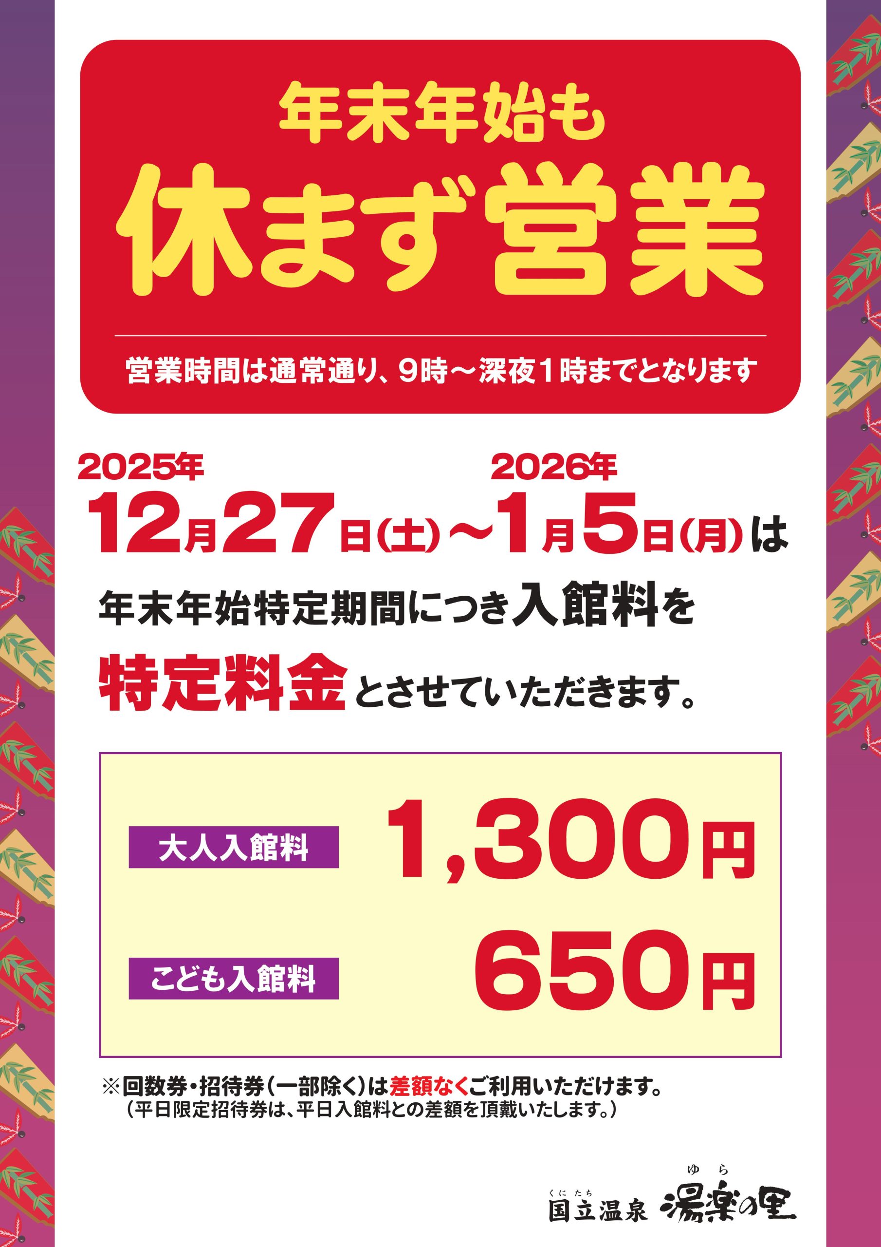 年末年始特定料金のご案内 2025年12月27日(土)~2026年1月5日(月)