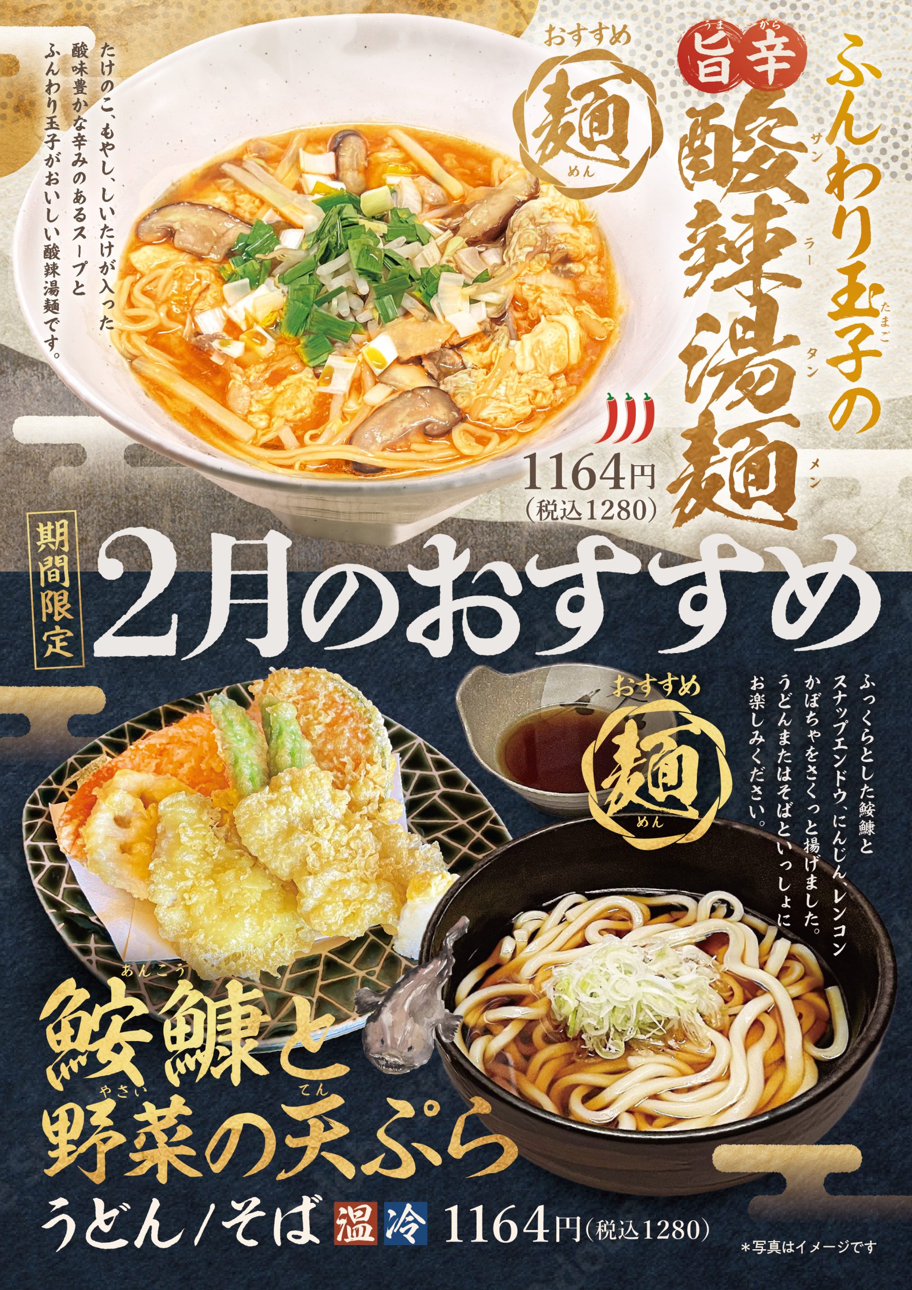 お食事処「季膳房」より、2月おすすめメニューのご案内です。