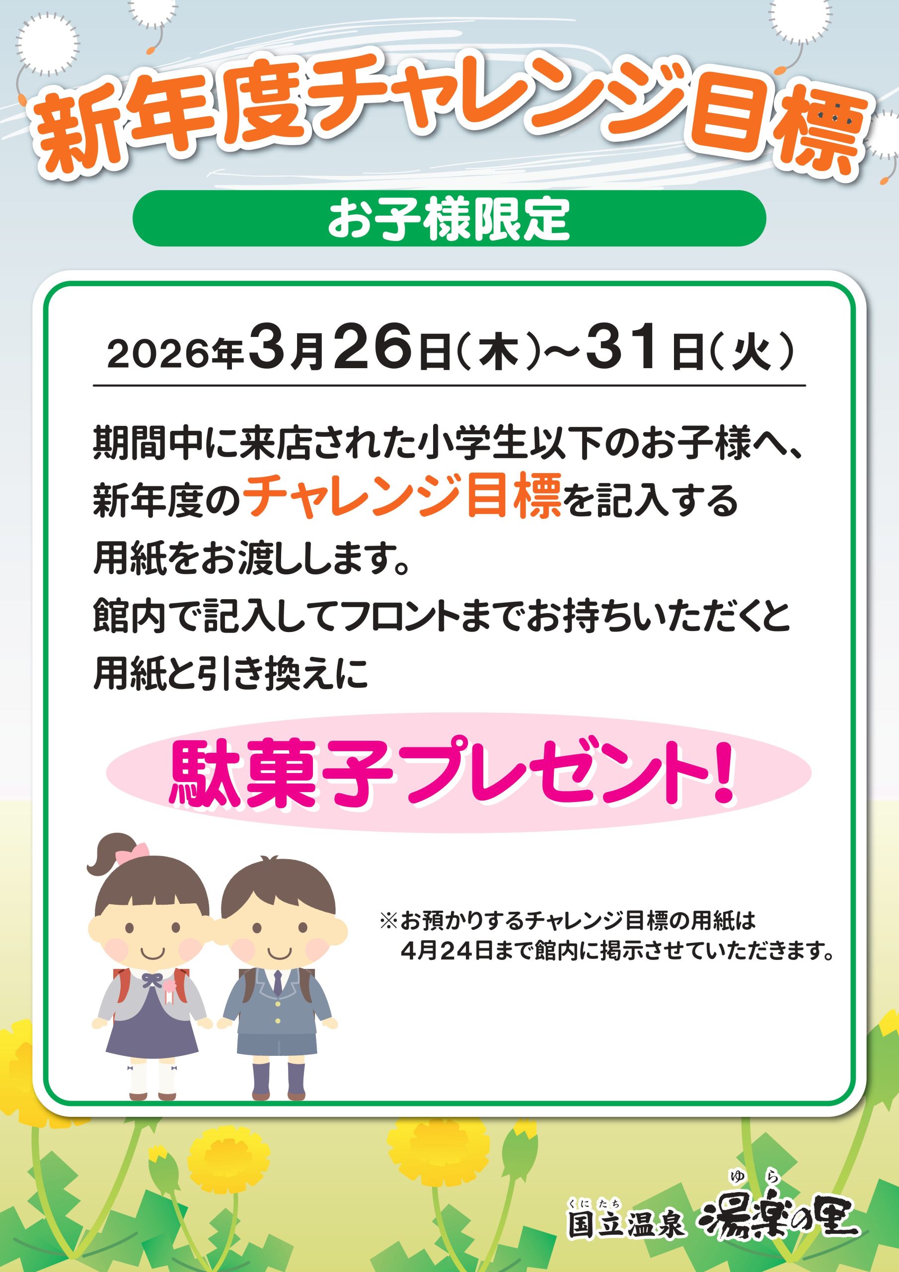 お子様限定イベント 新年度チャレンジ目標 3/26(木)~3/31(火)
