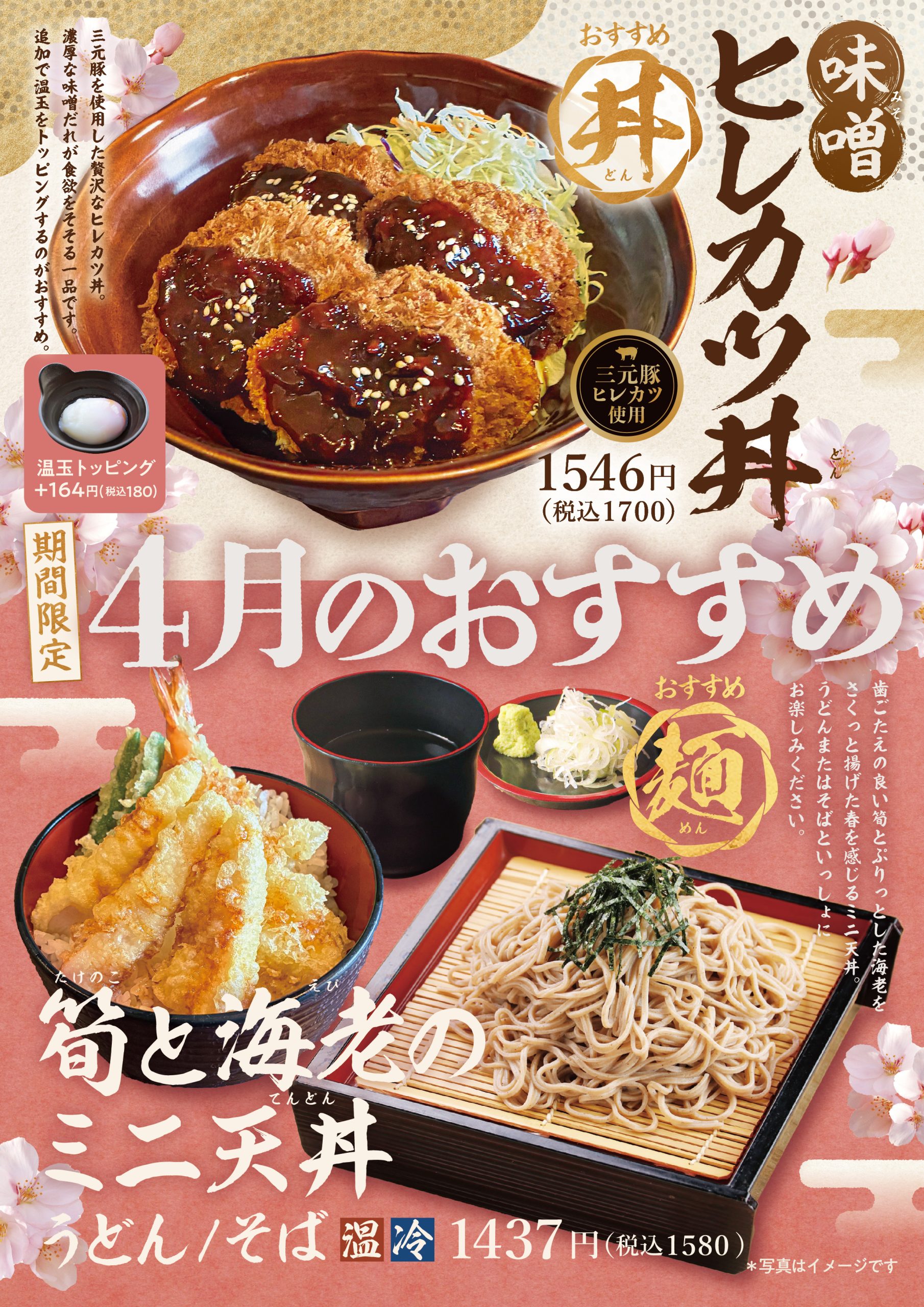 お食事処「季膳房」より、4月おすすめメニューのご案内です。