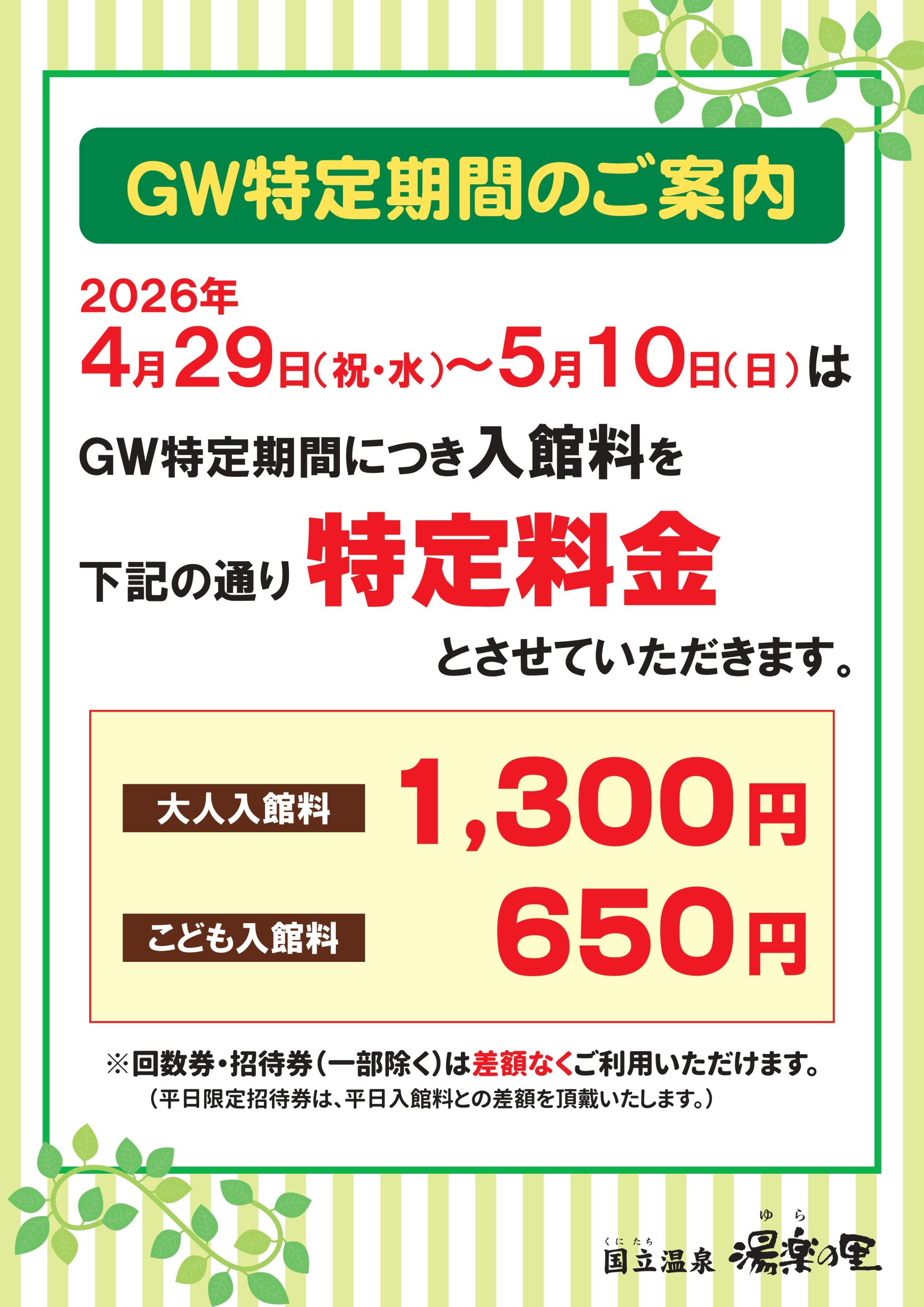 GW特定期間のご案内 4/29(祝・水)~5/10(日)