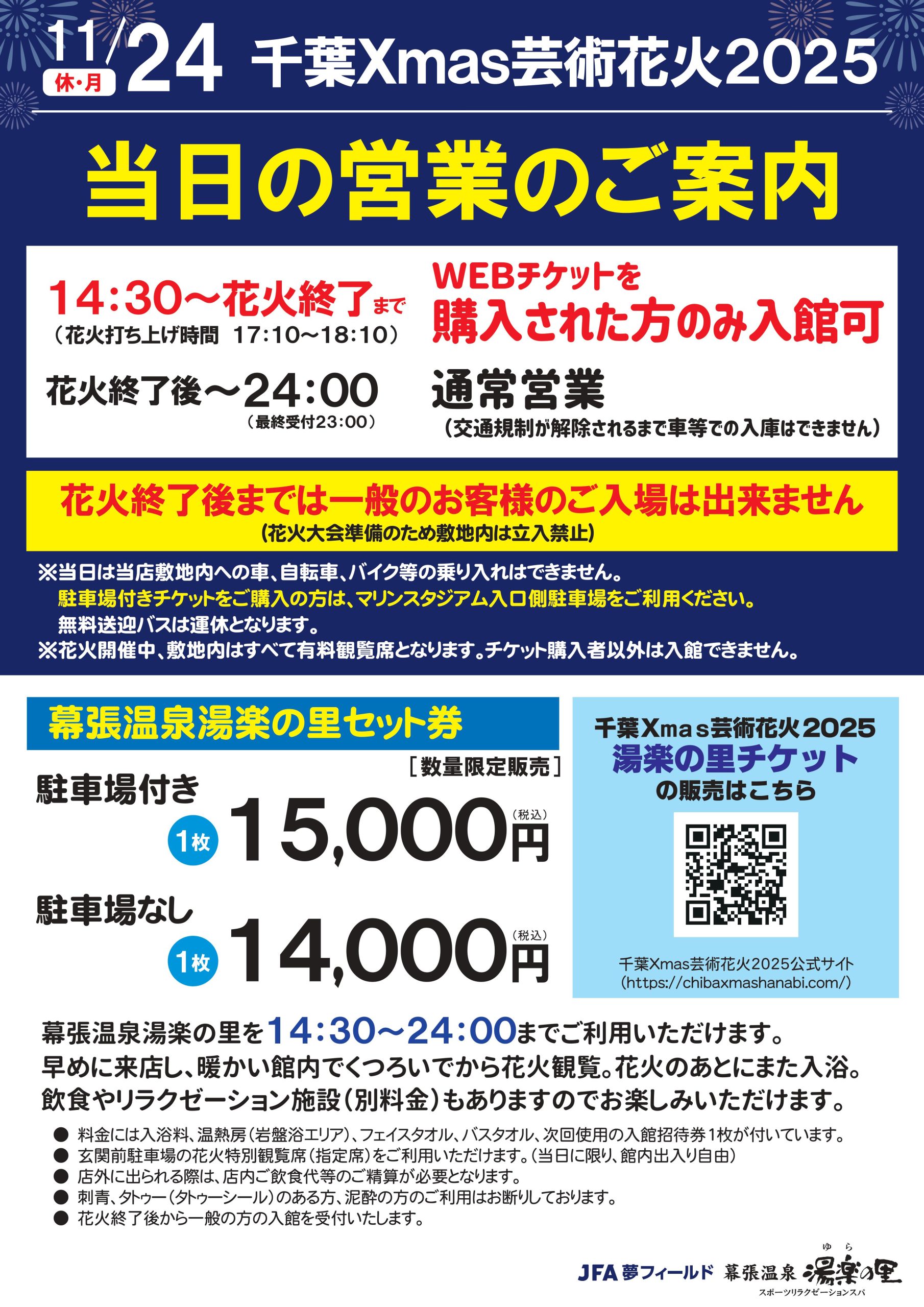 11/24(休・月)、「千葉Xmas芸術花火2025」が開催されます。
