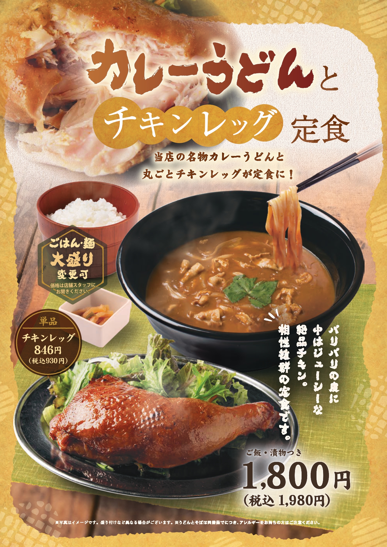 【お食事処 天風】 カレーうどんとチキンレッグ定食