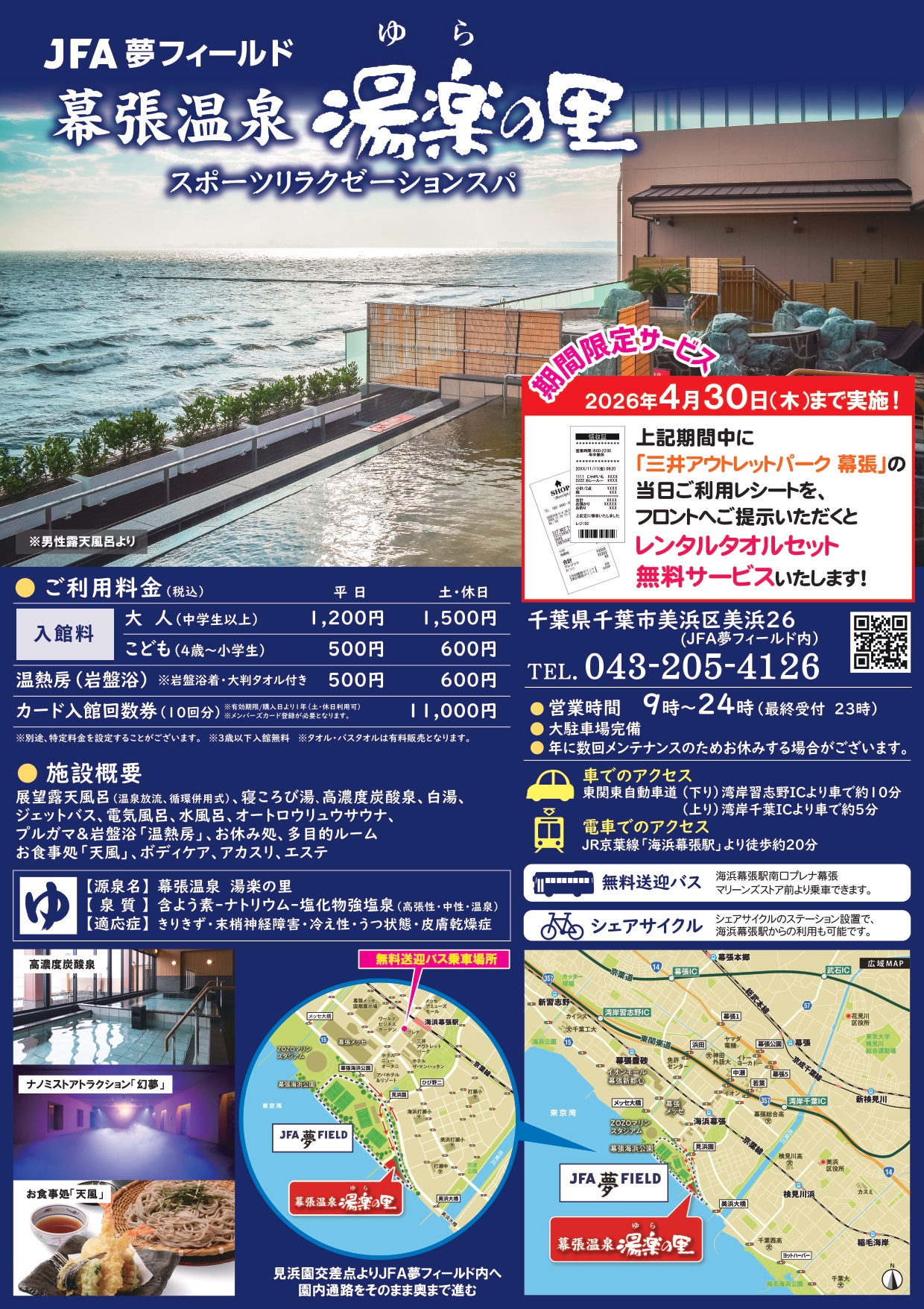 HOME 新着情報 三井アウトレットパーク 幕張 キャンペーン 2026年4月30日(木)まで 新着情報 2025年11月23日キャンペーン・イベント 三井アウトレットパーク 幕張 キャンペーン 2026年4月30日(木)まで 一覧に戻る
