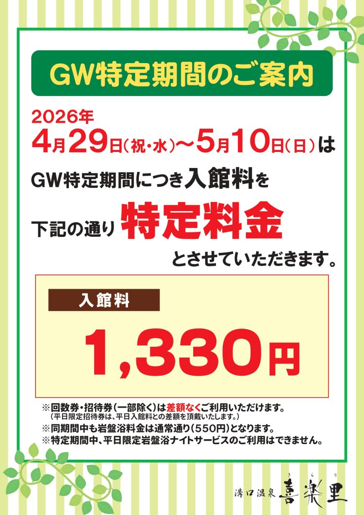 【GW特定期間のご案内】4/29(祝・水)~5/10(日)