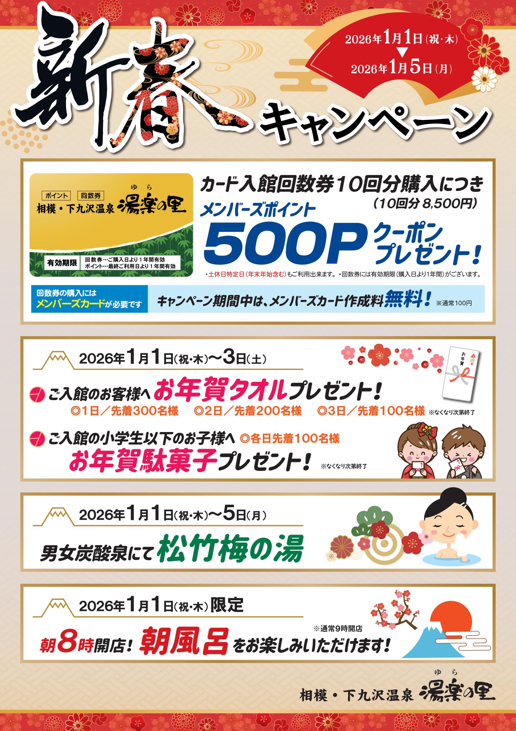 2026年1月1日(祝・木)~1月5日(月)の5日間、新春キャンペーンを開催します!!