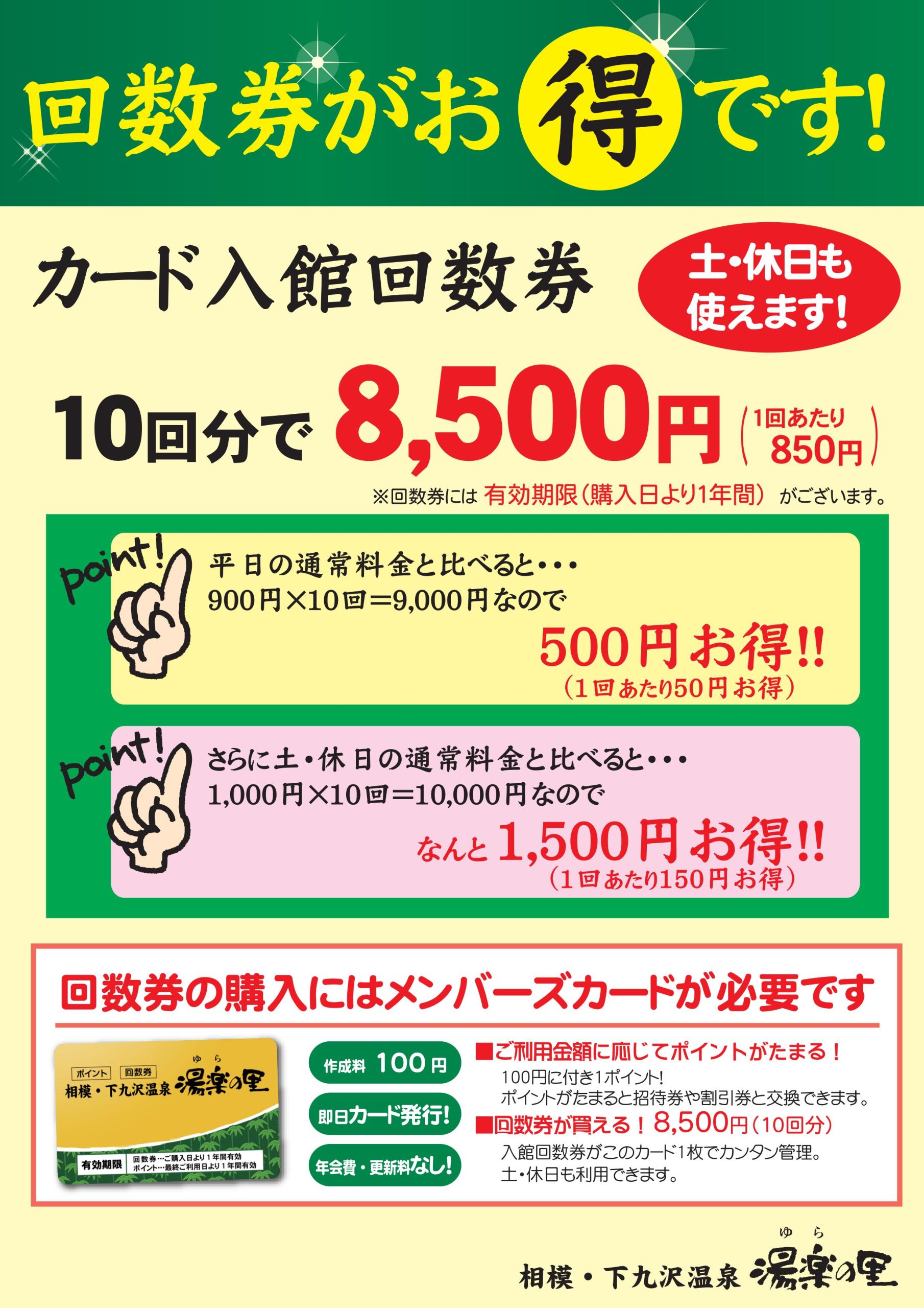 カード入館回数券がお得です!