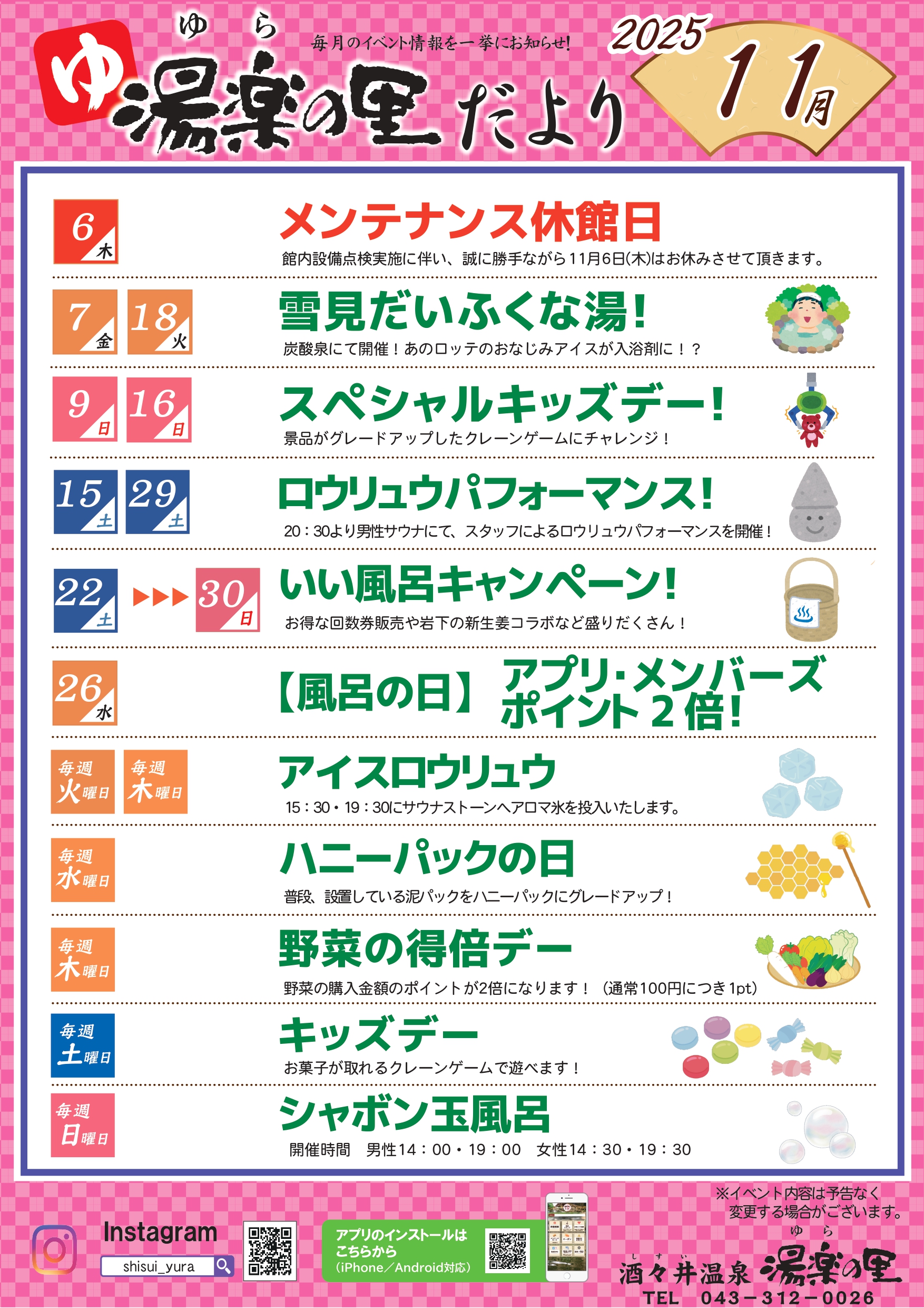 湯楽の里・喜楽里 公式アプリ会員募集中!