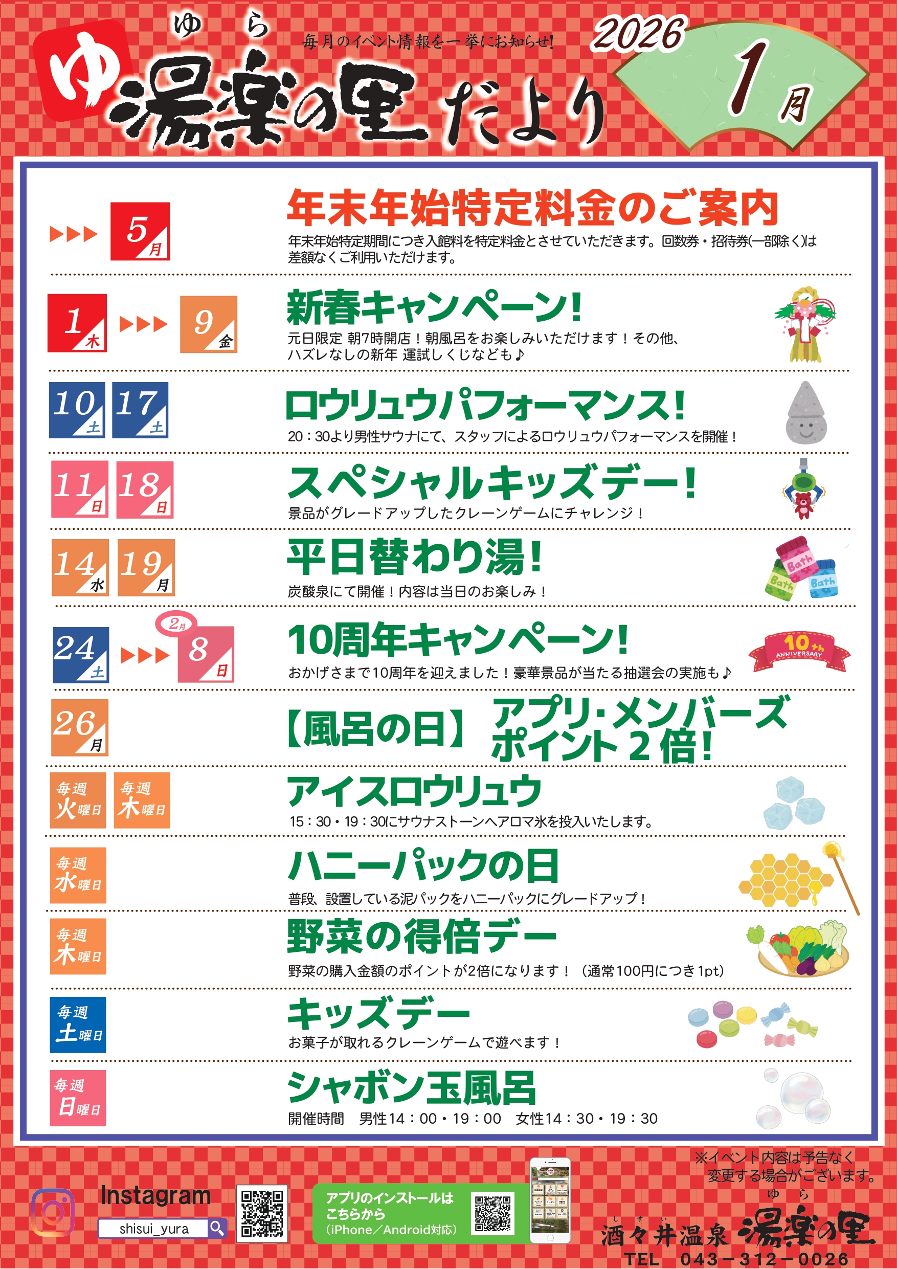 酒々井温泉からのお知らせ 2025年11月03日 料金改定のお知らせ(2025年12月1日~) 2025年12月30日 新春キャンペーン開催✨ 2025年12月20日 【本家さぬきや】期間限定特別メニュー✨ 2025年12月25日 湯楽の里だより【1月号】のご案内 2025年12月06日 【本家さぬきや】期間限定!中華フェア開催♪ 2025年12月05日 年末年始特定料金のご案内 2025年04月01日 湯楽の里・喜楽里 公式アプリ会員募集中!