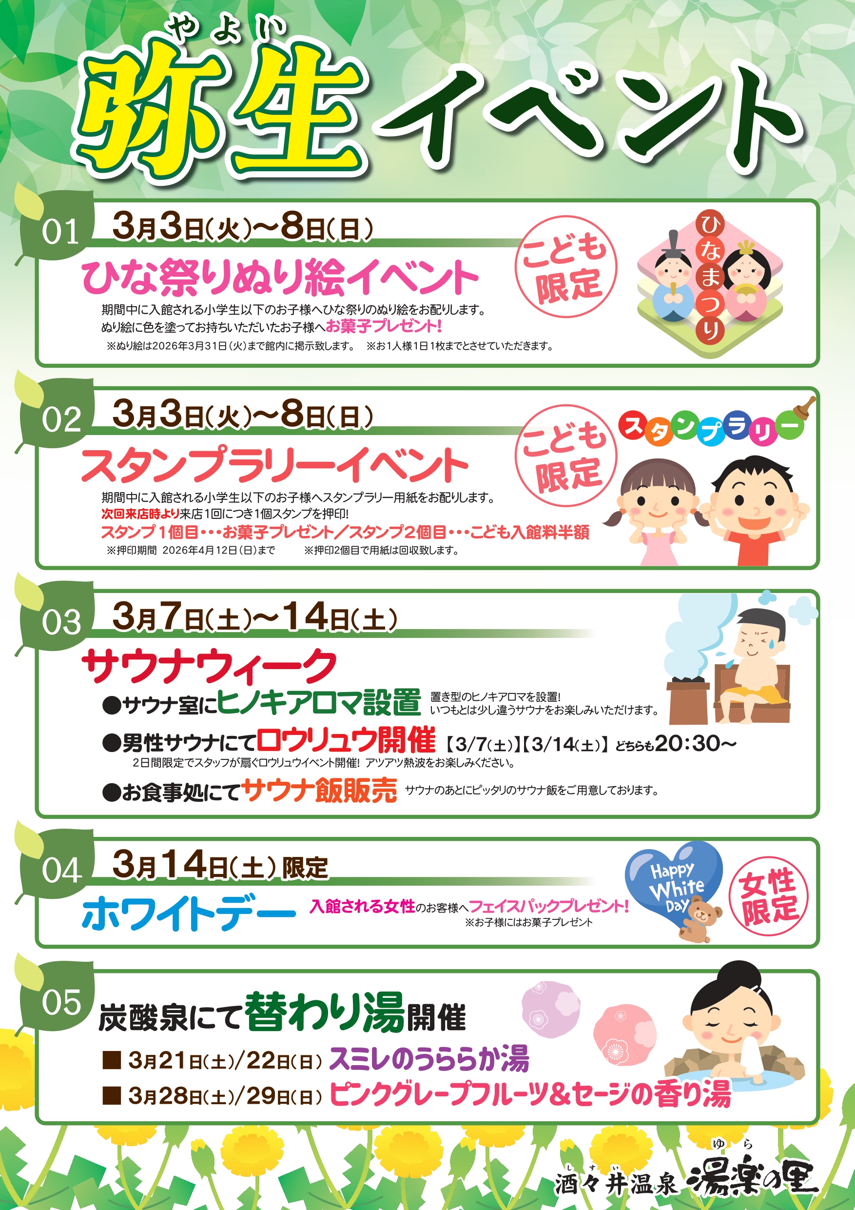 お子様限定ひな祭りぬりえイベントやスタンプラリーイベント、