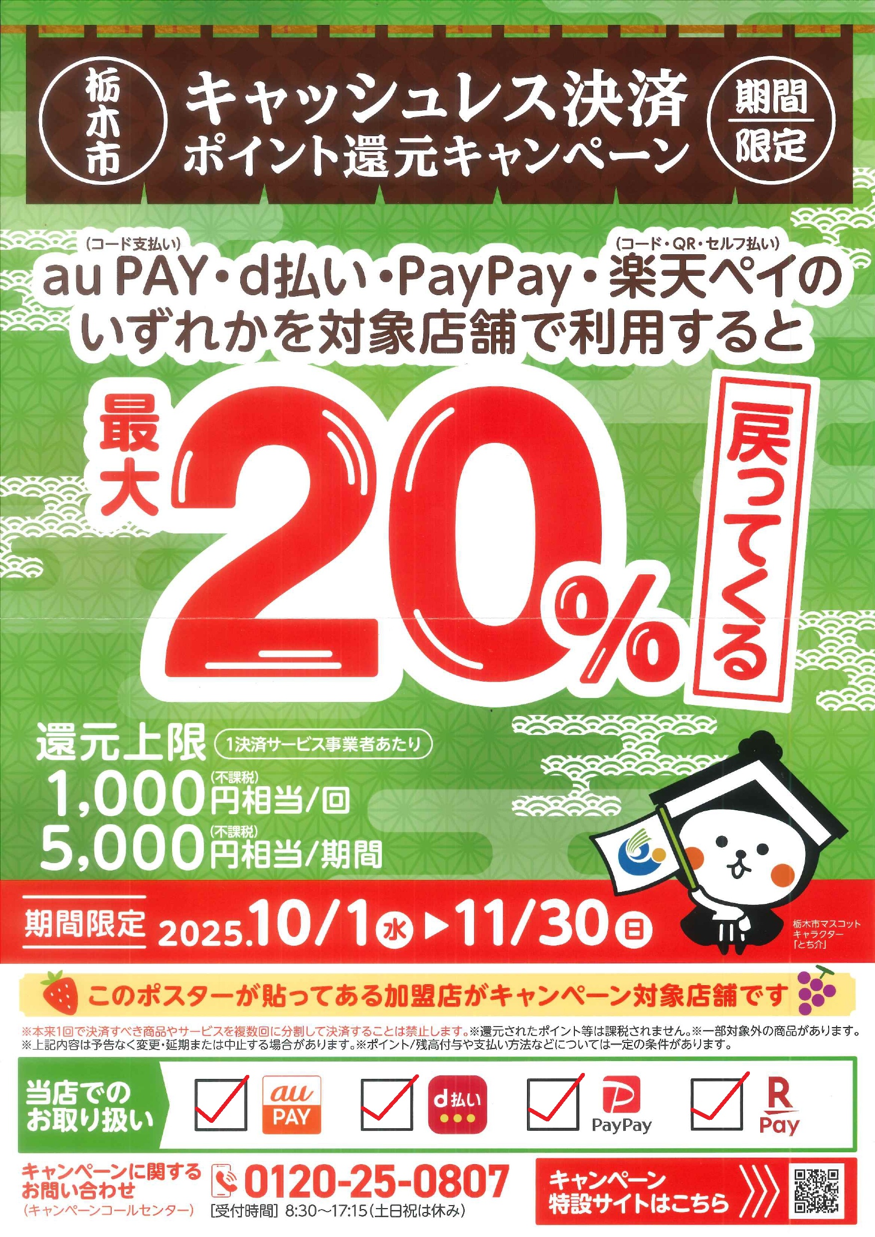「栃木市」キャッシュレス決済還元キャンペーンのお知らせ!