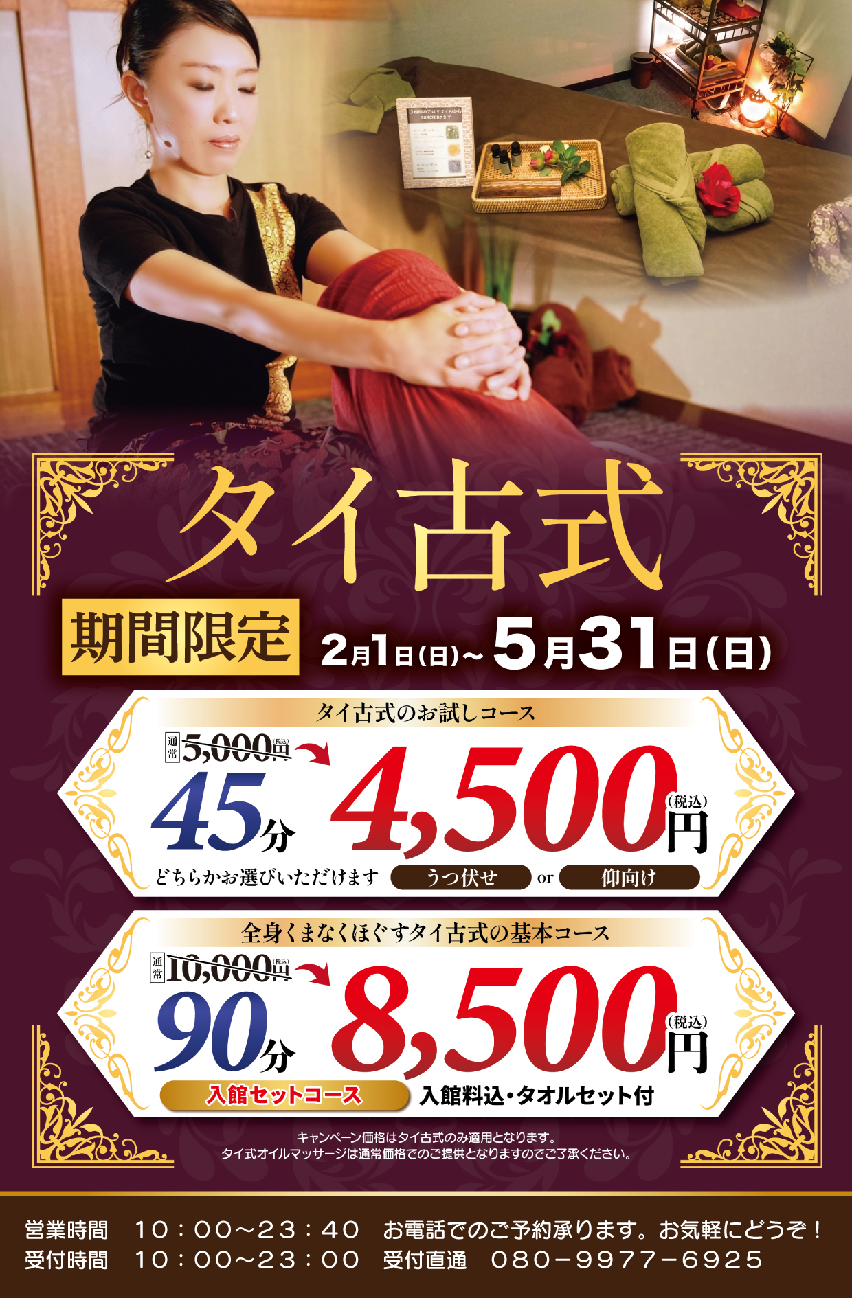 「癒し処」よりタイ古式期間限定キャンペーンのお知らせ