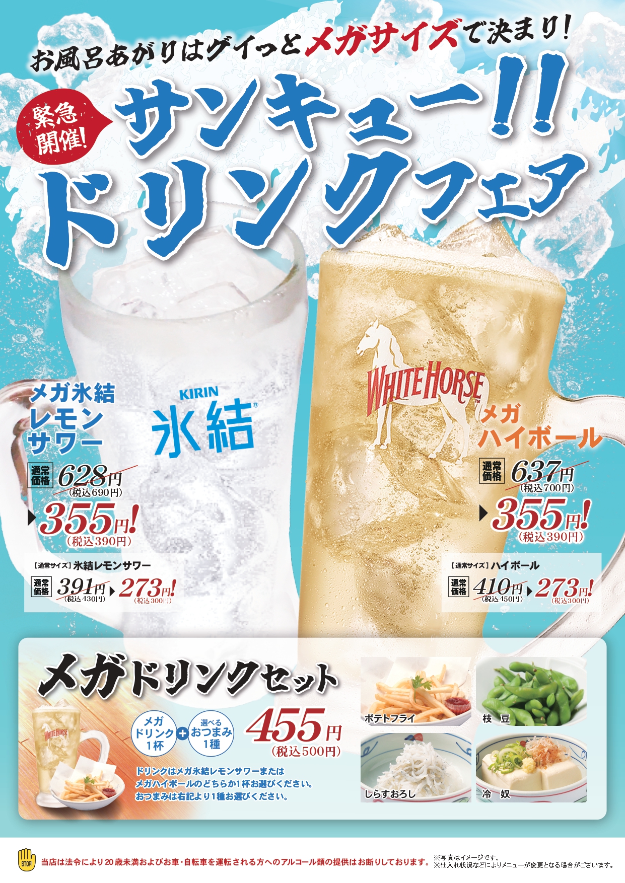 お食事処「咲楽」よりサンキュー!!ドリンクフェアのご案内!(平日限定)