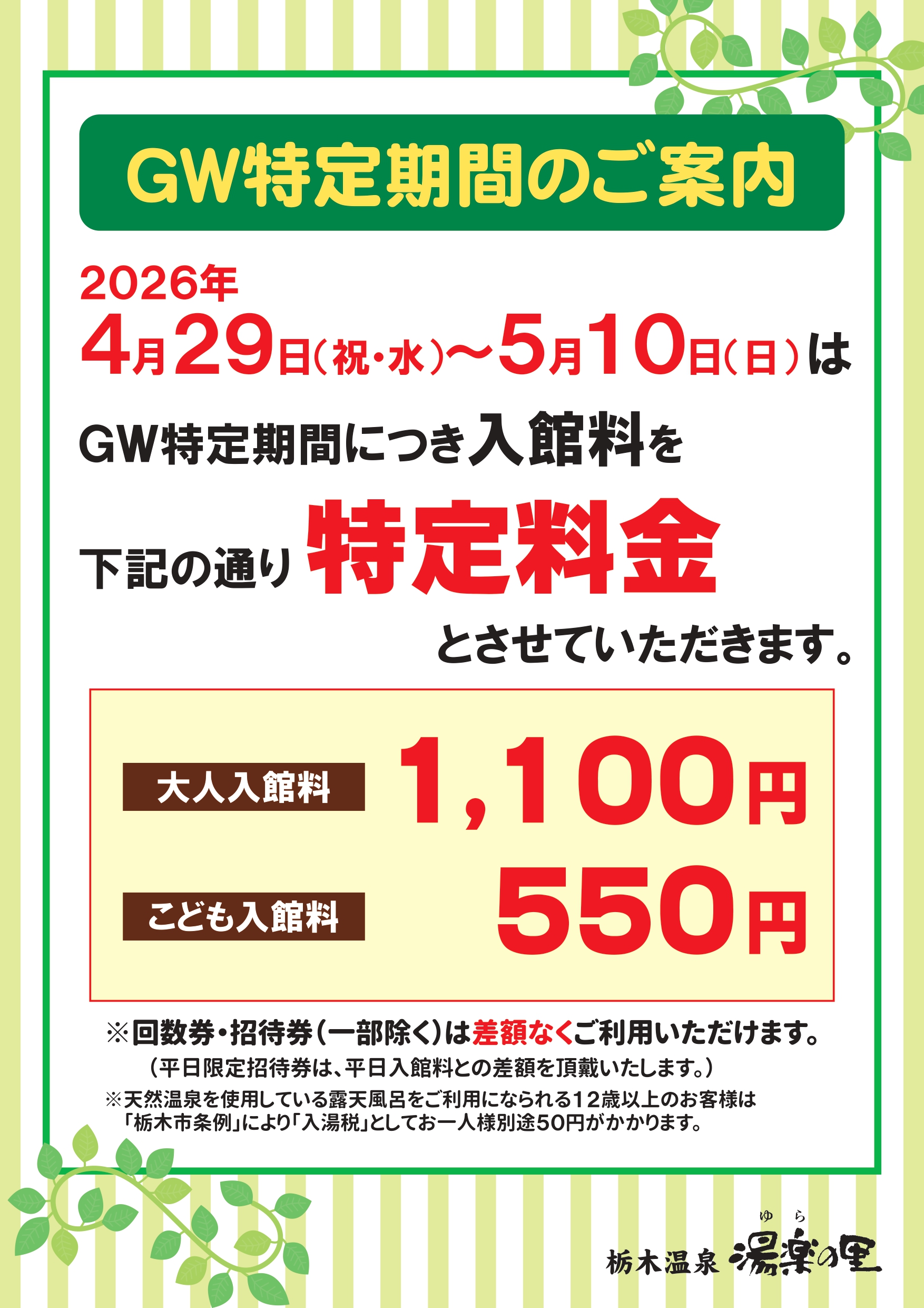 GW特定期間のご案内