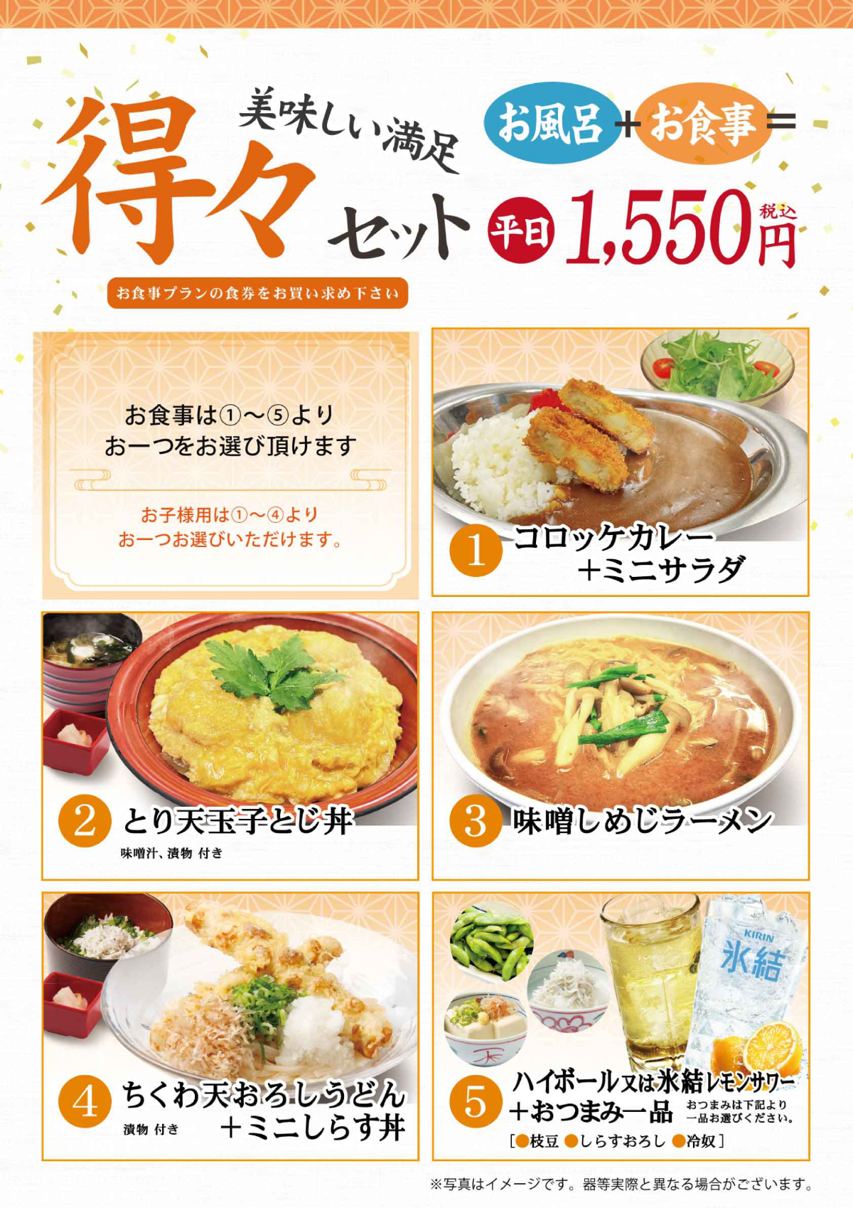 平日限定『得々セット』のメニューはこちら!※土・休日・特定期間は休止となります