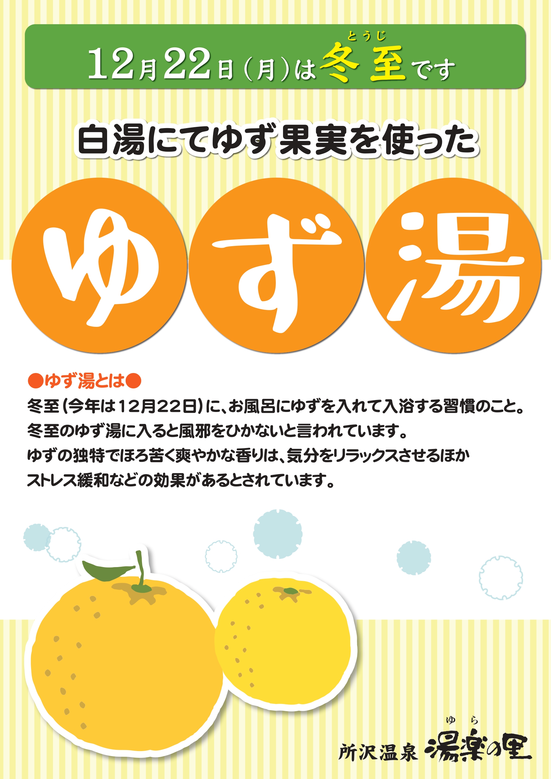 ゆず湯のお知らせ 12月22日(月)開催!
