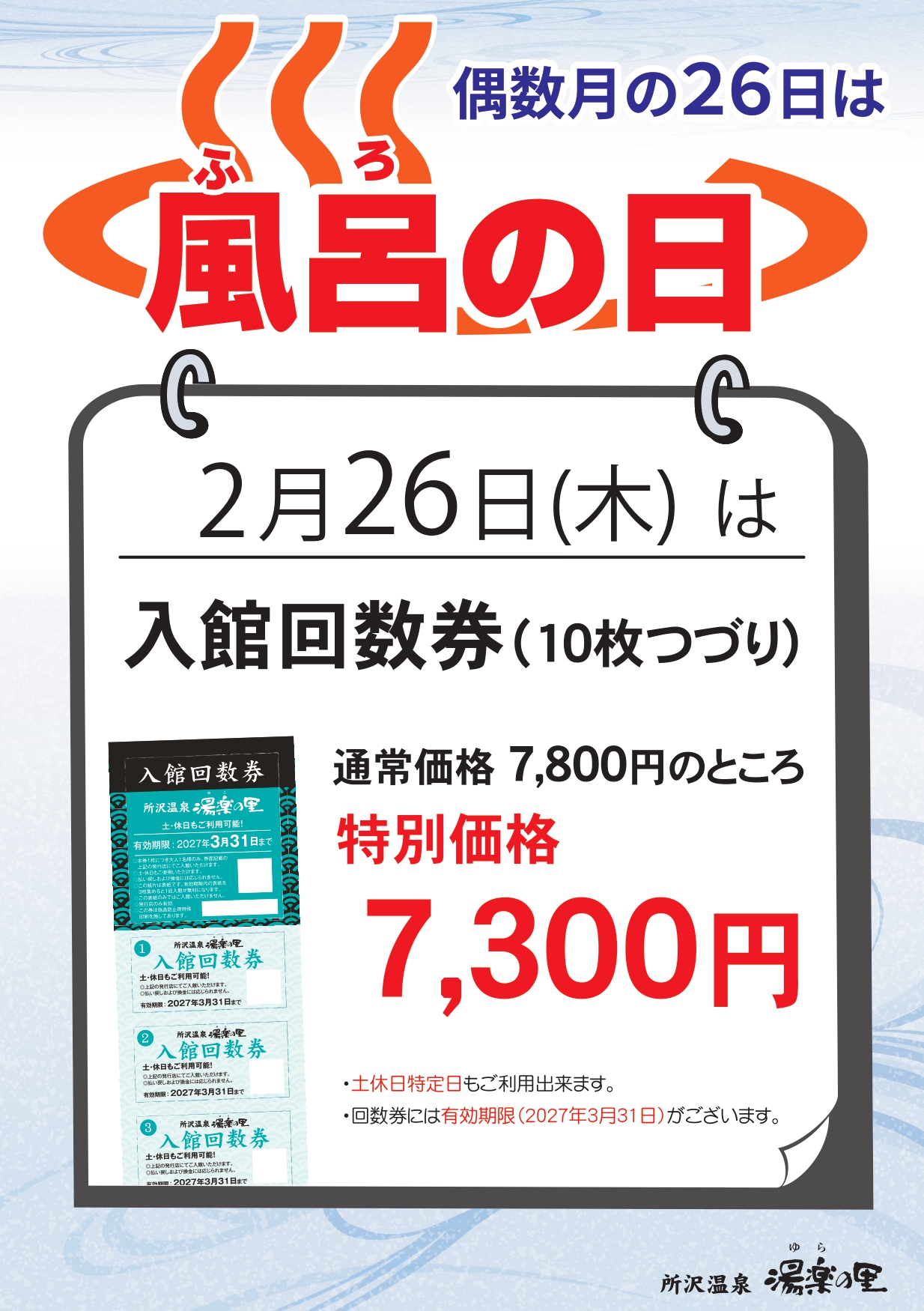 【風呂の日】入館回数券特別販売のお知らせ 2月26日(木)