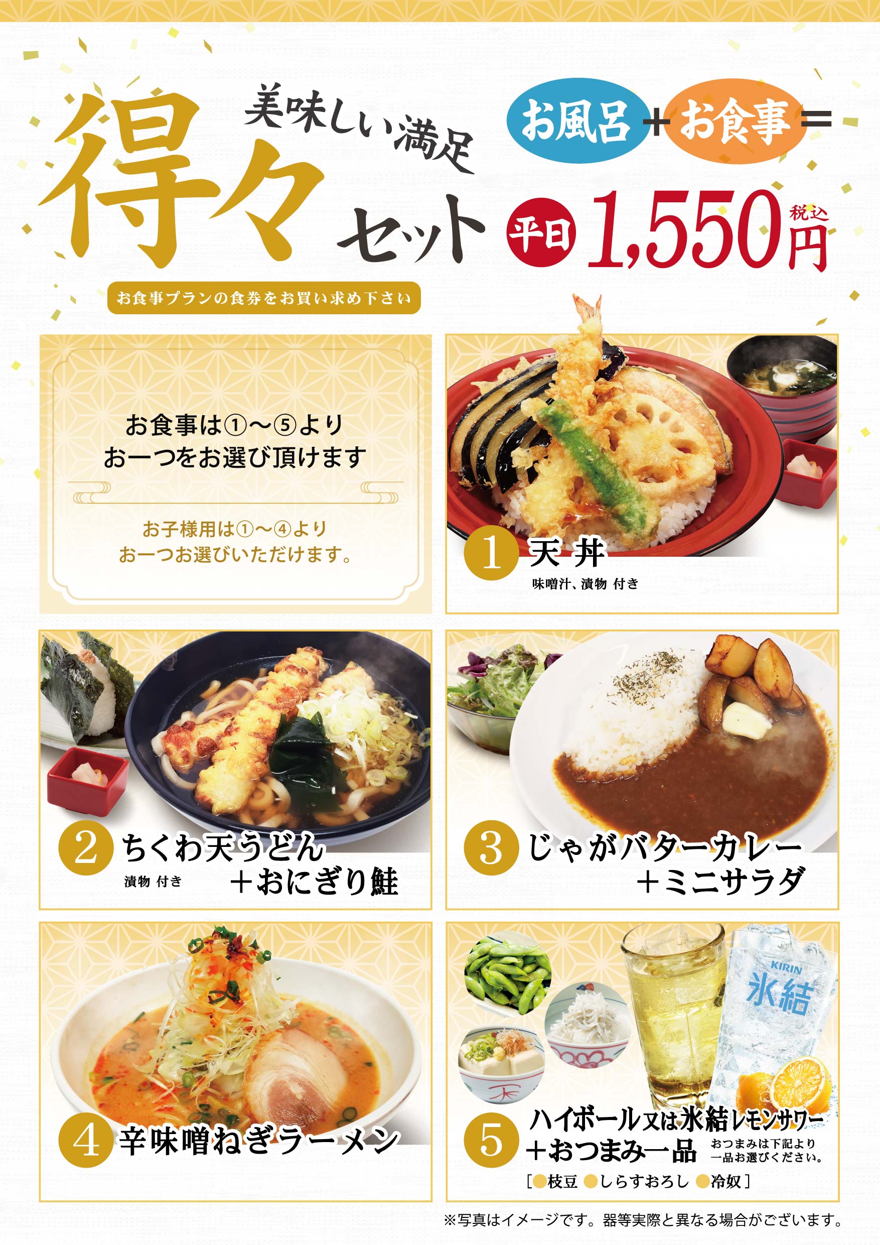 平日限定『得々セット』のメニューはこちら!※土・休日・特定期間は休止となります
