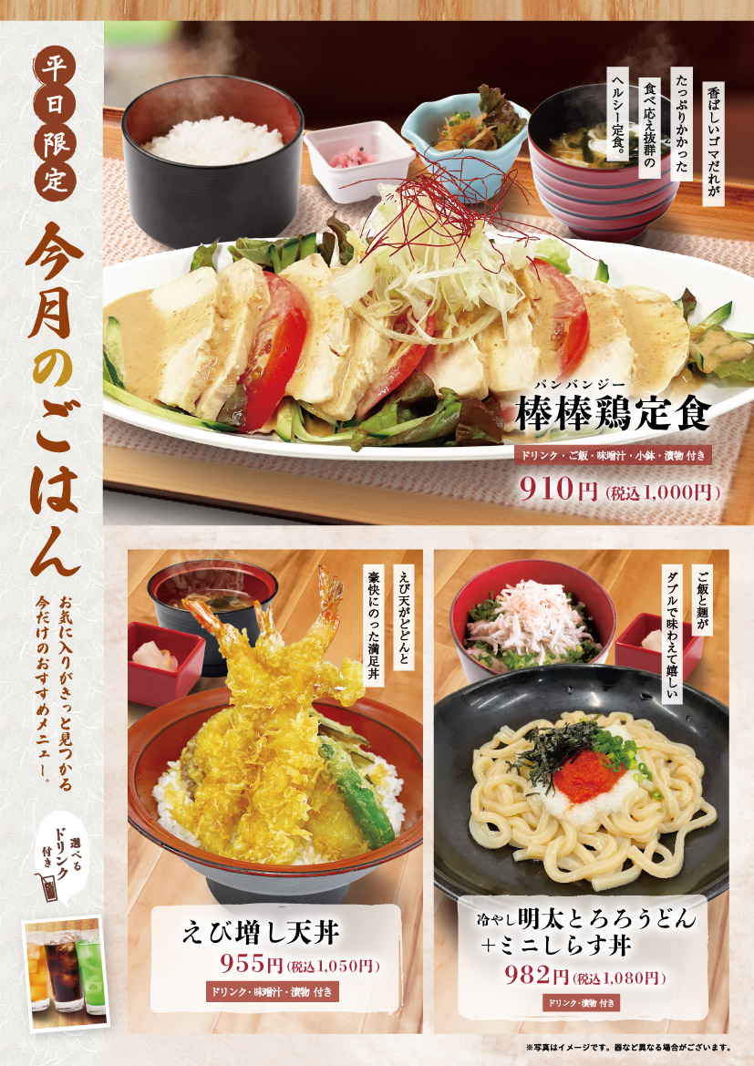NEWお食事処「ゆらり亭」より、今月のごはん! |