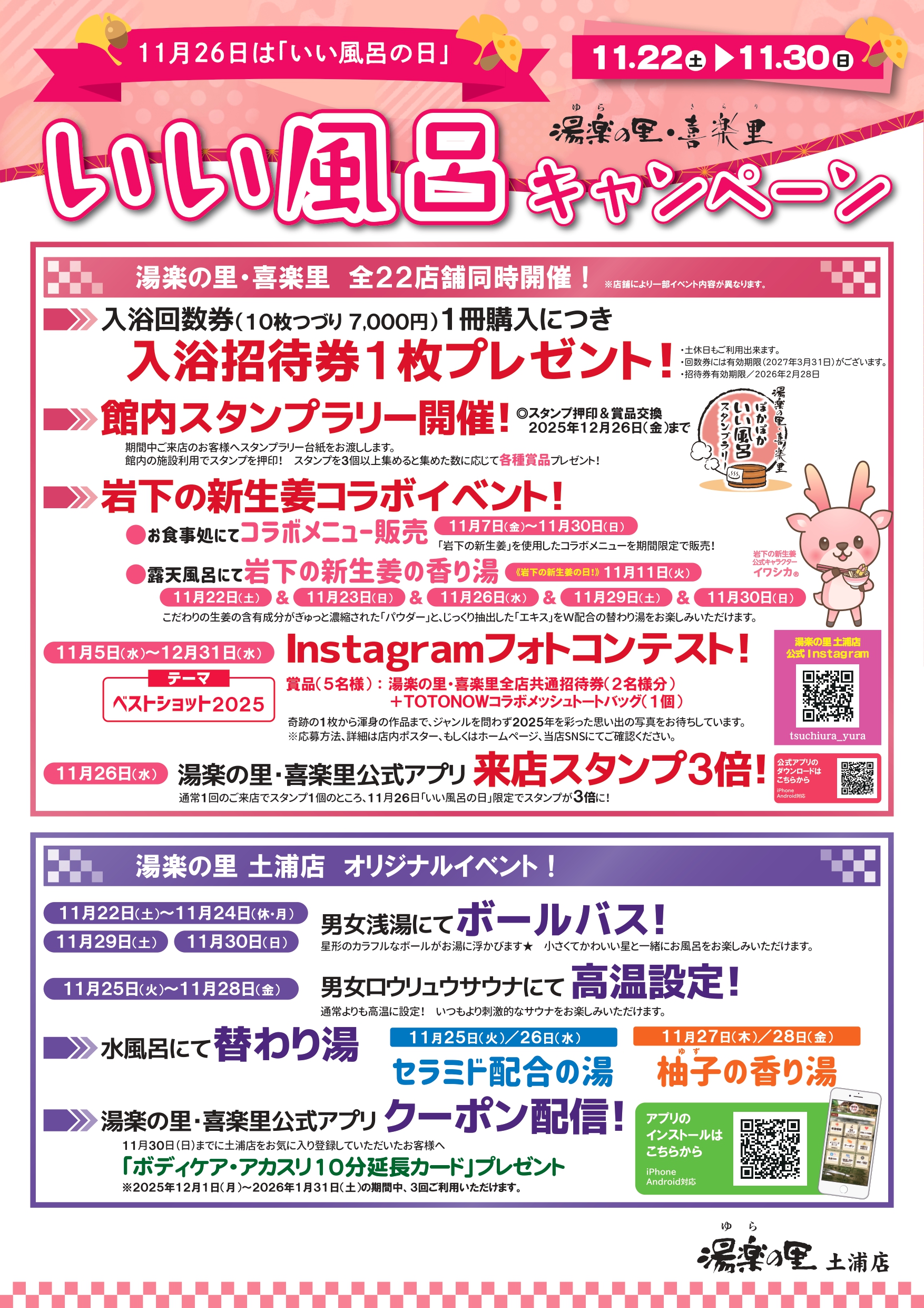 | 2025年11月05日 | いい風呂キャンペーン開催!(11/22~11/30) | |